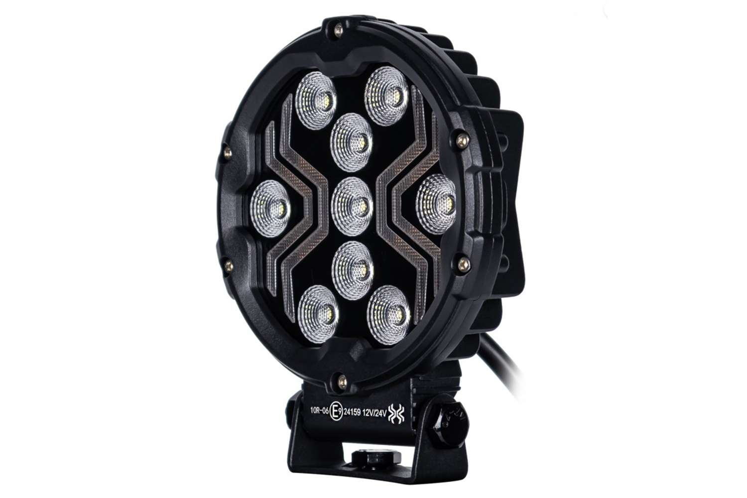 Lampen er utstyrt med ni 18 W LED-pærer med en lysstyrke på 1700 lumen . Den har to lysfunksjoner: en kraftig arbeidslampe med fokusert linse og en praktisk LED-stripe , som lar deg tilpasse belysningen til ulike oppgaver og arbeidsforhold. Den tilbyr en kraftig, presist rettet lysstråle som effektivt lyser opp arbeidsplassen, noe som øker komfort og sikkerhet. Den robuste konstruksjonen i aluminium og polykarbonat, samt beskyttelse mot revers polaritet, garanterer høy holdbarhet, pålitelighet og motstand mot tøffe driftsforhold .