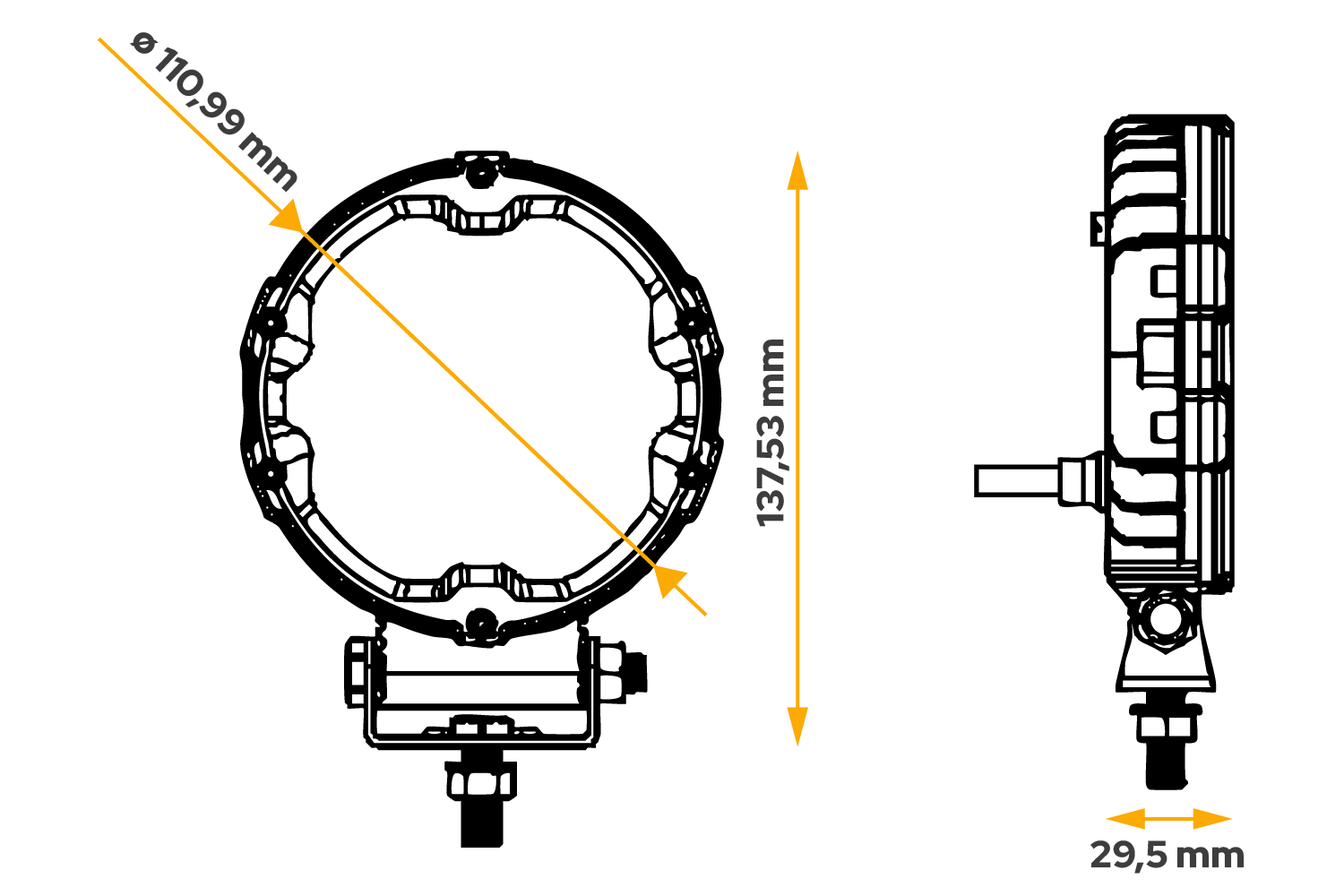 X-SPIDER 3 arbeidslampen fra KAMAR er en universell LED- lyskilde designet for bruk i tøffe miljøer. Den er ideell for nyttekjøretøy, landbruks-, anleggs- og terrengmaskiner, samt båter og som tilleggsbelysning for busser og lastebiler. Den har en robust design med dimensjoner på 111 mm diameter og 29,5 mm dybde , og opererer innenfor et spenningsområde på 12–24 V. En 0,3 m kabel gir enkel installasjon og tilkobling, selv på vanskelig tilgjengelige steder. Lampens hus er laget av slitesterke materialer, noe som sikrer motstand mot støt og mekanisk skade under krevende arbeidsforhold.