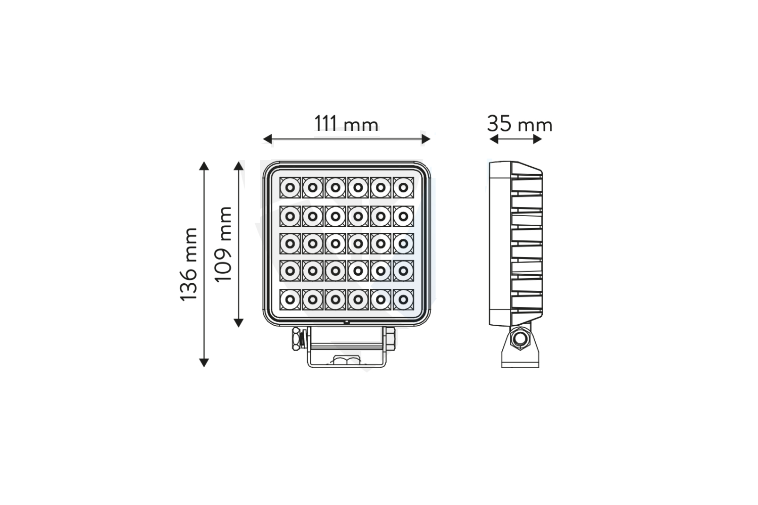 Arbeidslampen TT.13308-W fra TT TECHNOLOGY er en allsidig LED- lyskilde designet for bruk i tøffe miljøer. Den er ideell for nyttekjøretøy, landbruks-, anleggs- og terrengmaskiner, samt båter og som tilleggsbelysning for busser og lastebiler. Den har en robust design som måler 111 mm bred, 136 mm høy og 35 mm dyp , og opererer innenfor et spenningsområde på 10–30 V. En 1 meter lang kabel gir enkel installasjon og tilkobling, selv på vanskelig tilgjengelige steder. Lampens hus er laget av slitesterke materialer, noe som sikrer motstand mot støt og mekanisk skade under krevende arbeidsforhold.