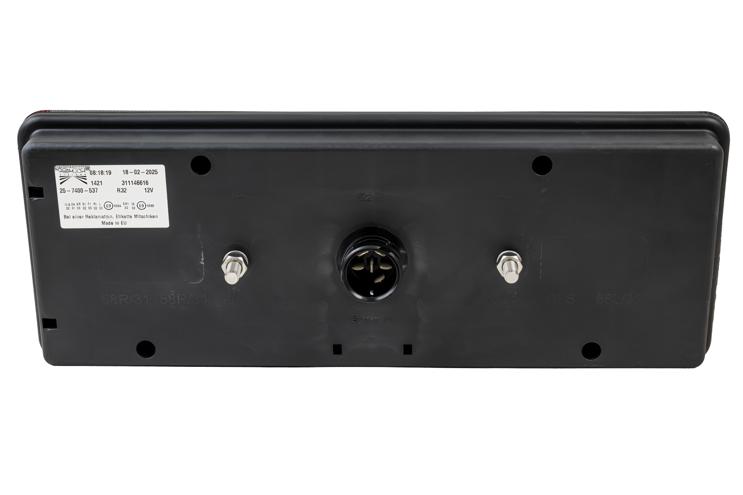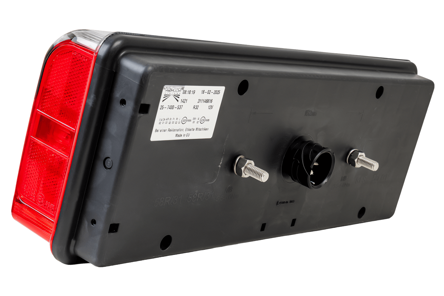 Europoint III baklykt fra ASPÖCK, beregnet for montering på høyre side av kjøretøyet , har følgende dimensjoner: bredde 400 mm, høyde 153 mm, dybde 88 mm . Utstyrt med en ASS2.1 7-pins kontakt , gir den enkel og rask installasjon i tilhengere, busser og bergingsbiler .