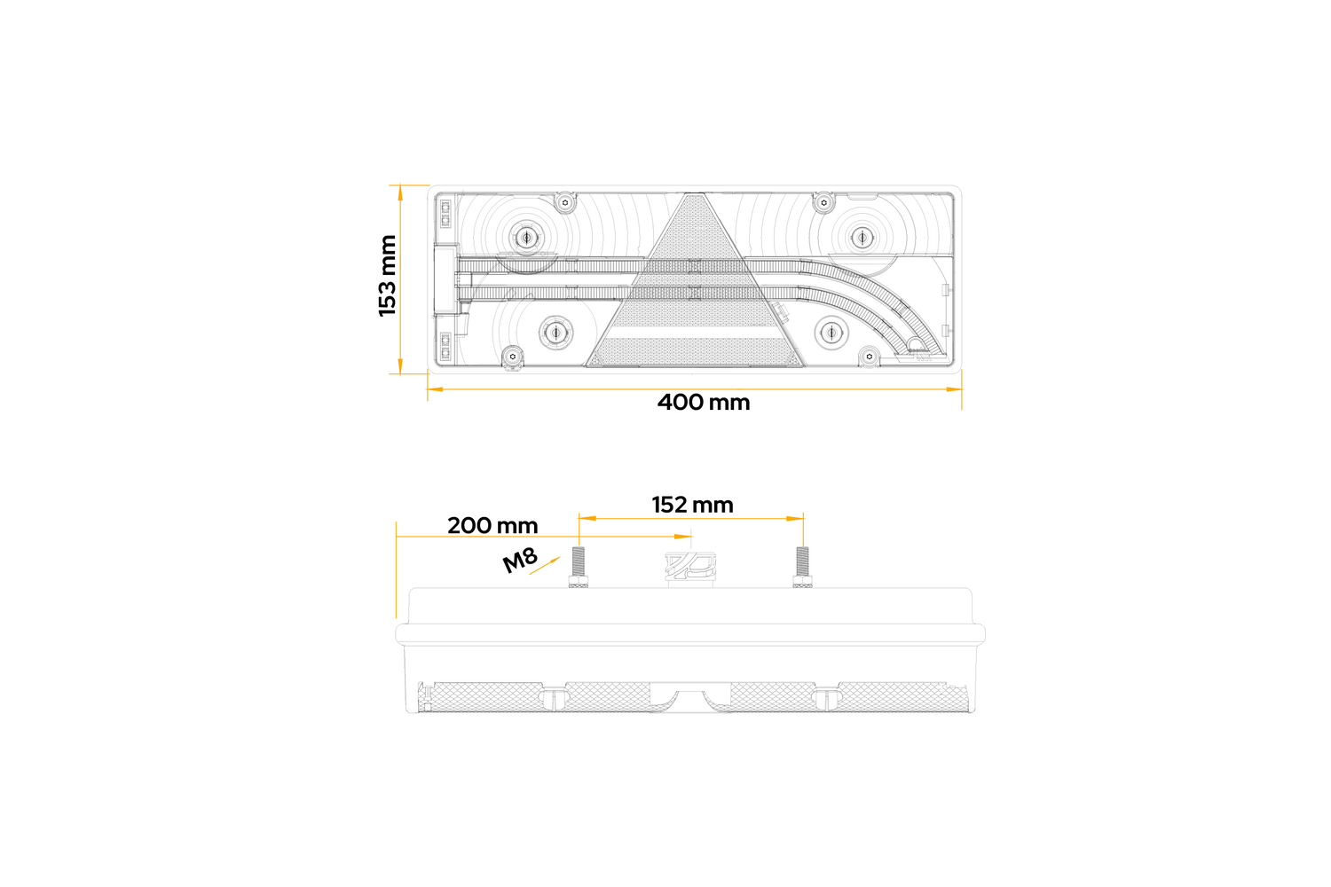 Europoint III baklykt fra ASPÖCK, beregnet for montering på venstre side av kjøretøyet , har følgende dimensjoner: bredde 400 mm, høyde 153 mm, dybde 88 mm . Utstyrt med en ASS2.1 7-pins kontakt , gir den enkel og rask installasjon i tilhengere, busser og bergingsbiler .