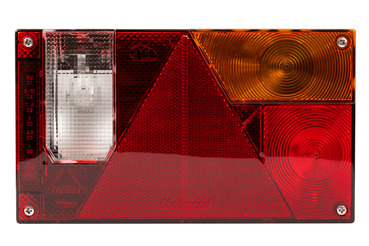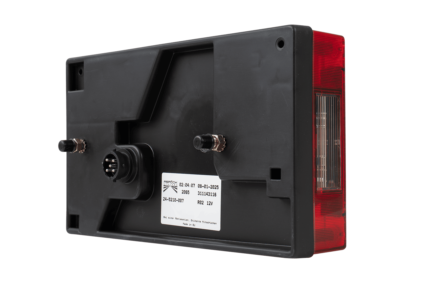Multipoint I-baklykten fra ASPÖCK er beregnet for montering på høyre side av kjøretøyet og har følgende dimensjoner: bredde 240 mm, høyde 140 mm, dybde 52 mm . Utstyrt med en 5-pinners bajonettkontakt , gir den enkel og rask installasjon i tilhengere, busser og bergingsbiler .