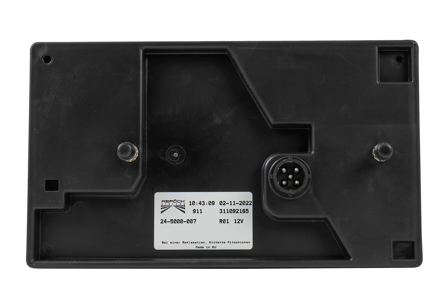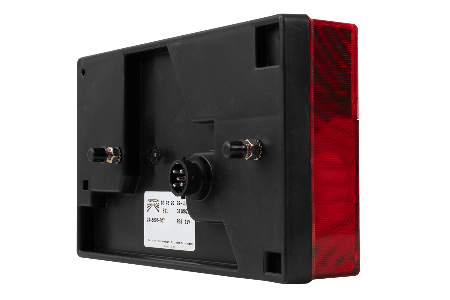 Multipoint I-baklykten fra ASPÖCK er beregnet for montering på venstre side av kjøretøyet og har følgende dimensjoner: bredde 240 mm, høyde 140 mm, dybde 52 mm . Utstyrt med en 5-pinners bajonettkontakt , gir den enkel og rask installasjon i tilhengere, busser og bergingsbiler .
