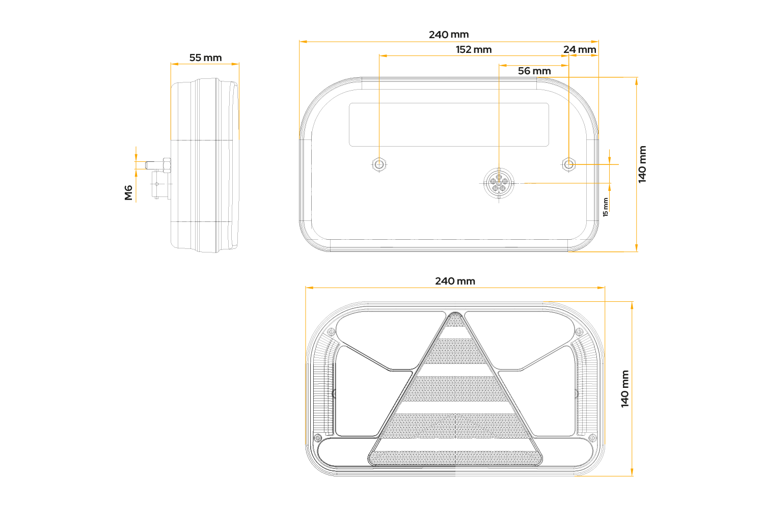 FT-170 LED-baklykt fra FRISTOM, designet for montering på venstre side av kjøretøyet , har følgende dimensjoner: bredde 240 mm, høyde 140 mm, dybde 55 mm . Den er designet for å operere innenfor et spenningsområde på 12–36 V , og kan brukes i tilhengere, lastebiler og bergingsbiler, noe som fremhever dens universalitet . Utstyrt med en 5-pinners bajonettkontakt , gir den enkel og rask installasjon. Takket være bruken av LED-teknologi gir lampen høy ytelse, holdbarhet og energieffektivitet, noe som sikrer sikkerhet under ulike veiforhold. Lampens konstruksjon er motstandsdyktig mot støt og mekanisk skade, og har også elektrisk beskyttelse mot omvendt polaritet, noe som i tillegg øker påliteligheten under vanskelige driftsforhold.