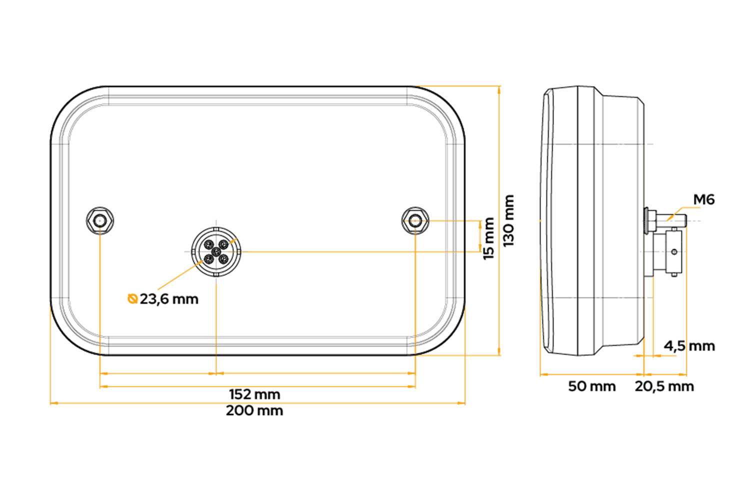 FT-270 LED-baklykt fra FRISTOM, designet for montering på høyre side av kjøretøyet , er karakterisert ved følgende dimensjoner: bredde 200 mm, høyde 130 mm, dybde 50 mm . Designet for å operere innenfor et spenningsområde på 12 V , kan den brukes i lette tilhengere, busser og tilhengere, noe som fremhever dens universalitet. Utstyrt med en 5-pinners bajonettkontakt , gir den enkel og rask installasjon. Takket være bruken av LED-teknologi gir lampen høy ytelse, holdbarhet og energieffektivitet, noe som sikrer sikkerhet under ulike veiforhold. Lampens konstruksjon er hermetisk , motstandsdyktig mot støt og mekanisk skade, og har også elektrisk beskyttelse mot omvendt polaritet, noe som i tillegg øker påliteligheten under vanskelige driftsforhold .