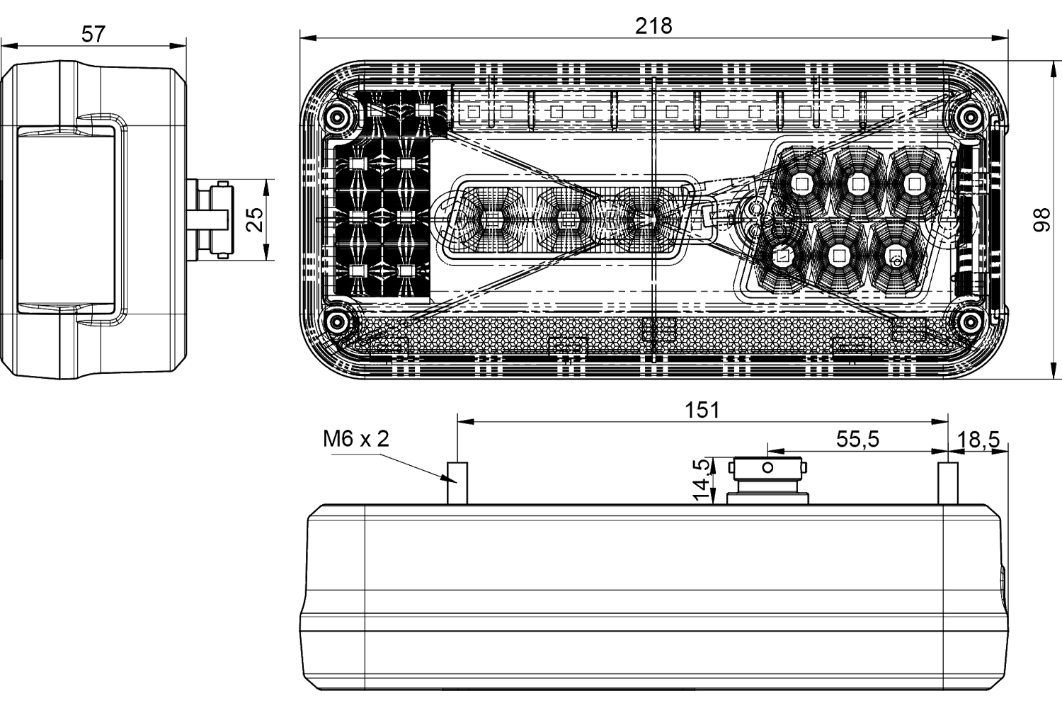 • DPT30 LED DOBPLAST baklykten er designet for montering på venstre side. Den tilbyr seks funksjoner: posisjonslys, bremselys, tåkelys, blinklys, nummerskiltlys og en reflekterende trekant.