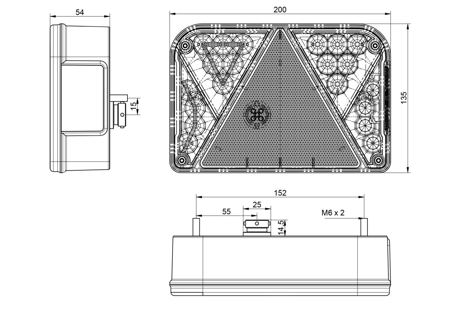 • DPT35 LED DOBPLAST baklykten er designet for montering på høyre side. Den tilbyr seks funksjoner: posisjonslys, bremselys, ryggelys, blinklys, nummerskiltlys og en reflekterende trekant.