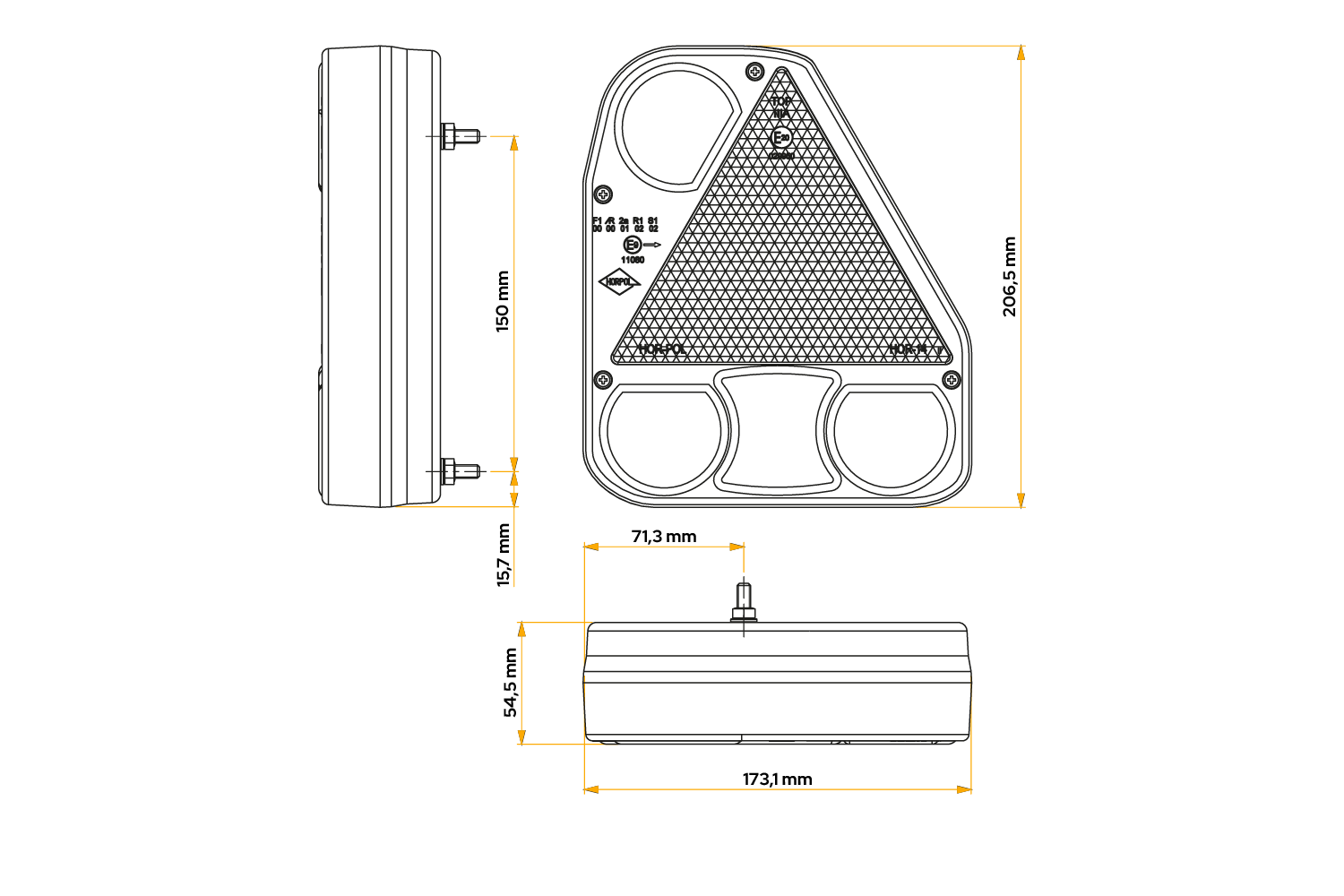 LZD 774 LED-baklykt fra HORPOL er designet for montering på høyre side av kjøretøyet og har følgende dimensjoner: bredde 206,5 mm, høyde 174 mm, dybde 54,5 mm . Designet for å operere innenfor et spenningsområde på 12-24 V , kan den brukes i tilhengere, lastebiler og tilhengere, noe som fremhever dens universalitet. Lampen har en kabelgjennomføring , og settet inkluderer en hunnkontakt, krympeslange og et kabelbånd for rask og praktisk kabeltilkobling. Takket være bruken av LED-teknologi gir lampen høy ytelse, holdbarhet og energieffektivitet, noe som sikrer sikkerhet under ulike veiforhold.