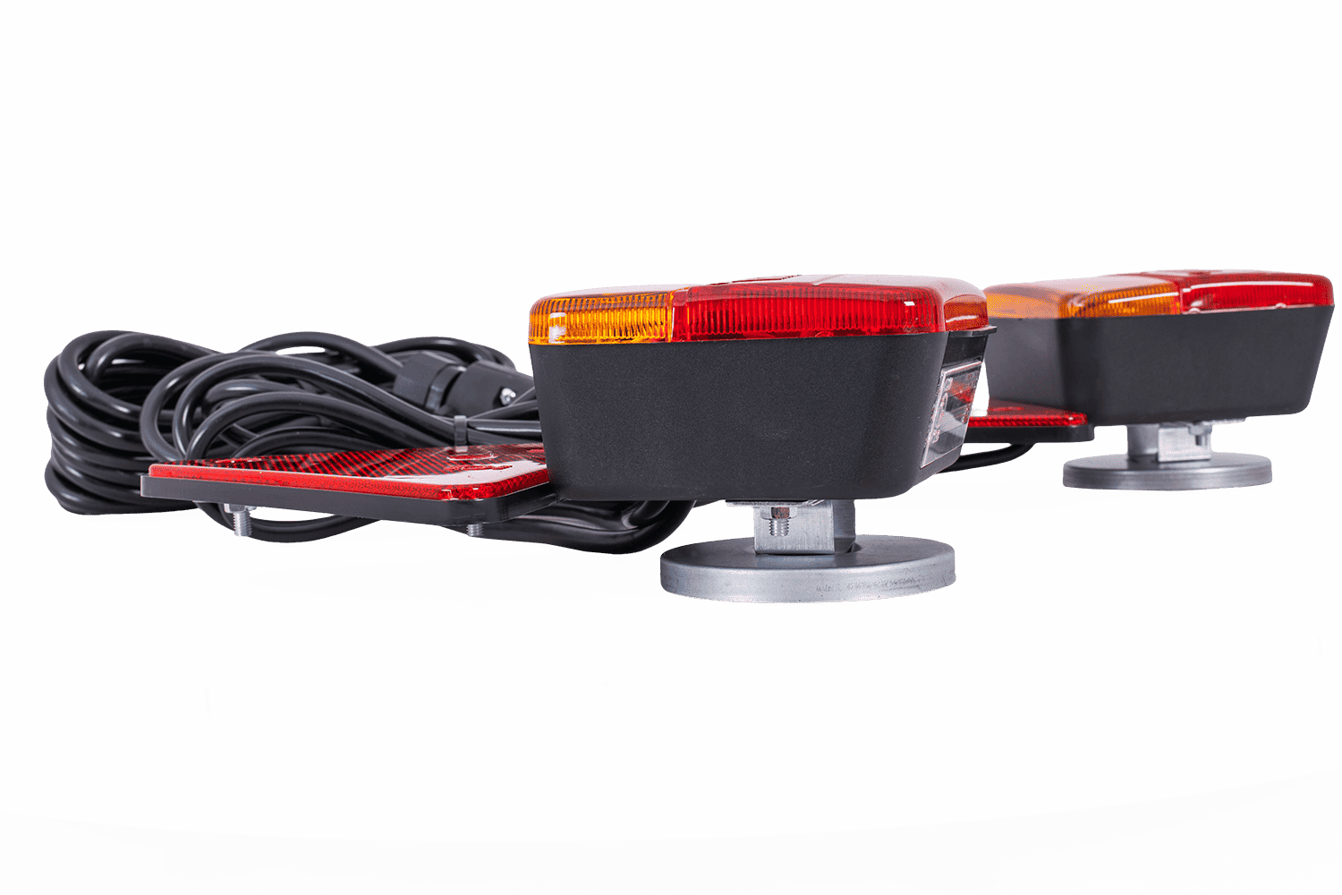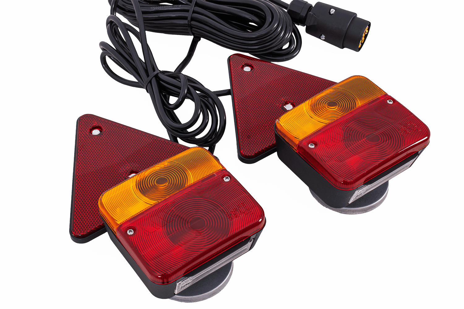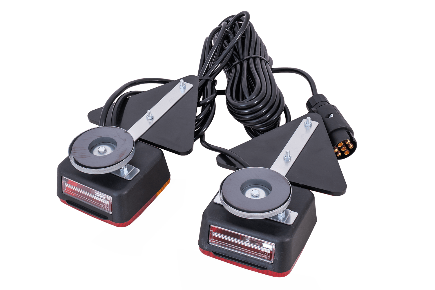 Sett med to baklykter L1070-Z KAMAR merke, beregnet for montering på venstre og høyre side av kjøretøyet , karakterisert ved dimensjoner: bredde 106 mm, høyde 100 mm . Utstyrt med en 7,5 m kabel med en 7-PIN bajonettplugg og en 2,5 m lampekoblingskabel, som muliggjør enkel og rask installasjon i tilhengere, busser eller tilhengere . Takket være den magnetiske monteringen er installasjonen ekstremt enkel og krever ikke boring eller ekstra braketter.