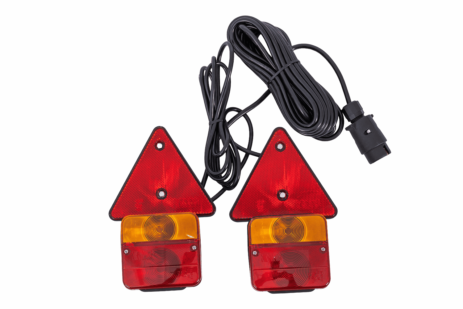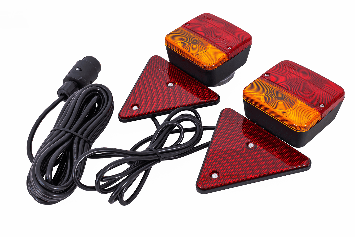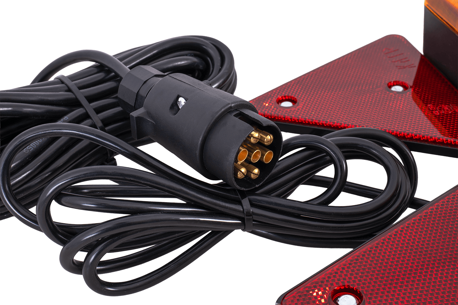 Sett med to baklykter L1070-Z KAMAR merke, beregnet for montering på venstre og høyre side av kjøretøyet , karakterisert ved dimensjoner: bredde 106 mm, høyde 100 mm . Utstyrt med en 7,5 m kabel med en 7-PIN bajonettplugg og en 2,5 m lampekoblingskabel, som muliggjør enkel og rask installasjon i tilhengere, busser eller tilhengere . Takket være den magnetiske monteringen er installasjonen ekstremt enkel og krever ikke boring eller ekstra braketter.