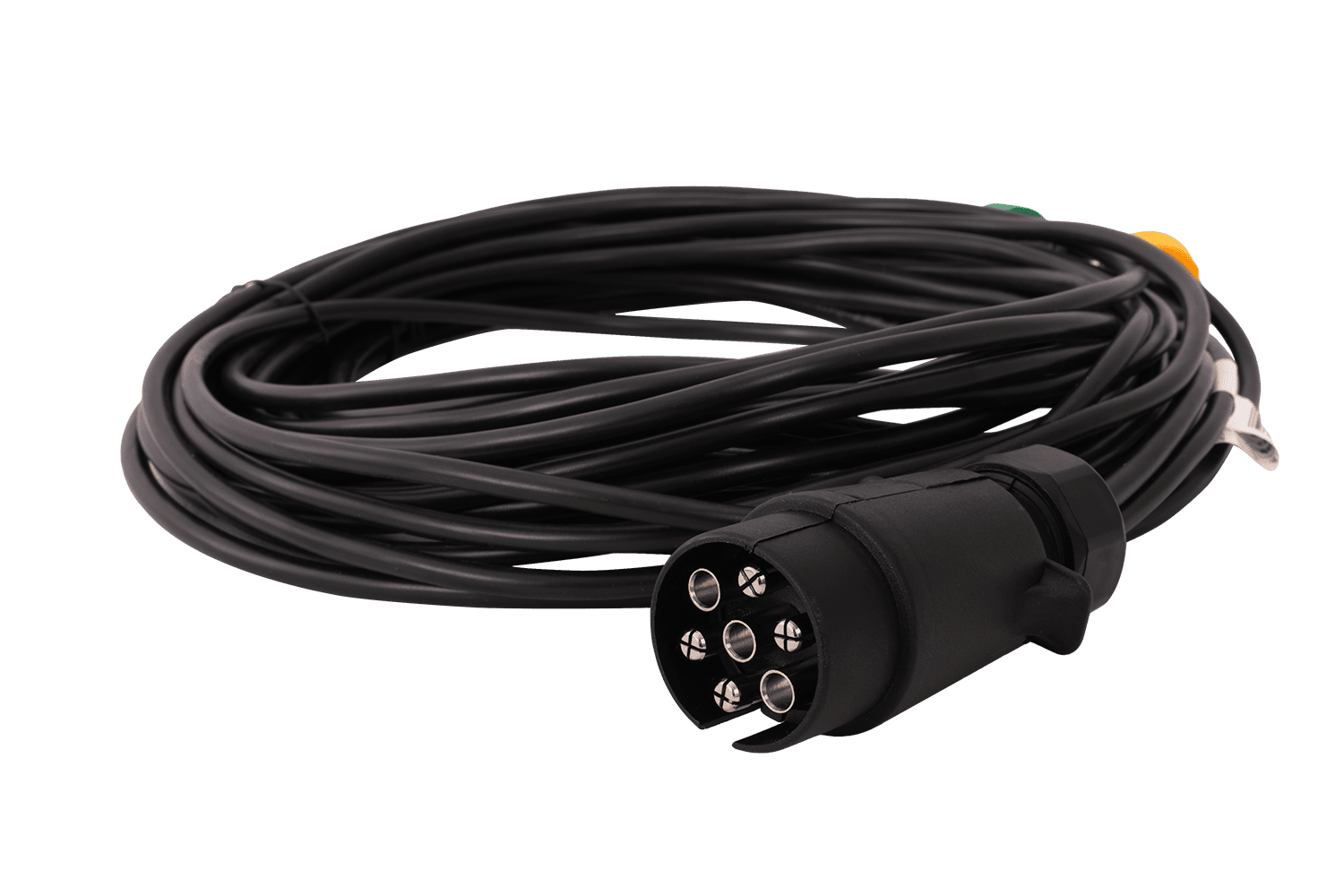 MANTES elektriske installasjon er en praktisk og pålitelig løsning for bilhengere. Hovedkabelen, 7 meter lang, med et tverrsnitt på 0,5 mm², er utstyrt med en standard 7 PIN-plugg , som sikrer universell kompatibilitet med de fleste kjøretøy.