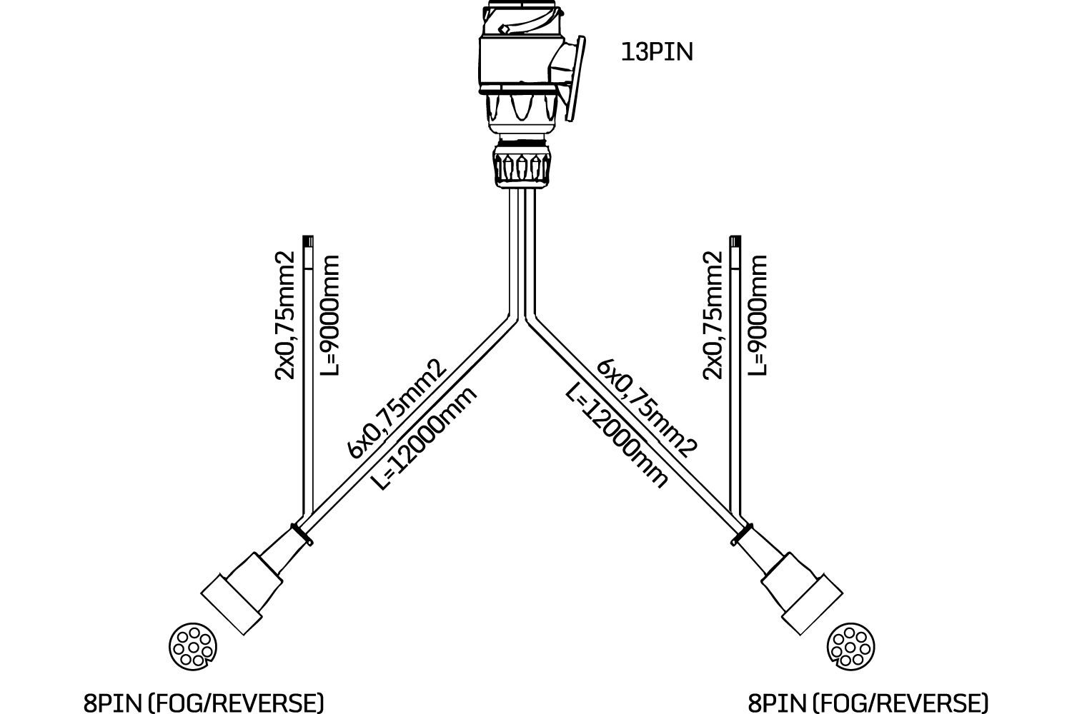 MANTES elektrisk installasjon, tilhenger trekkbil sele, 12 m, 13 PIN støpsel, 2x 8 PIN bajonetter