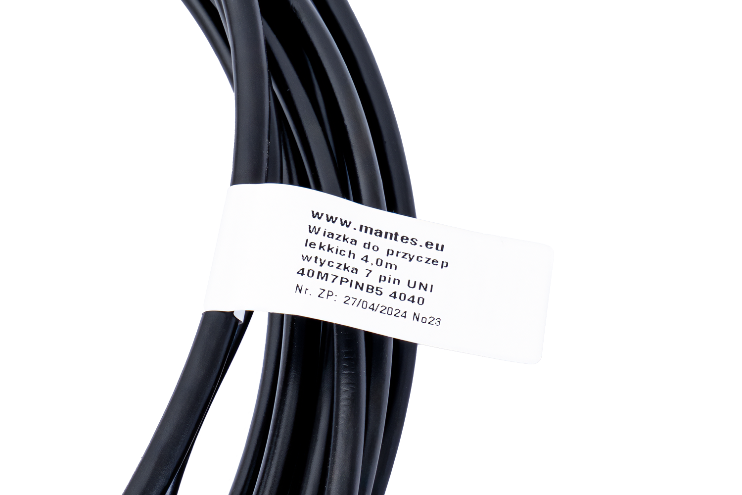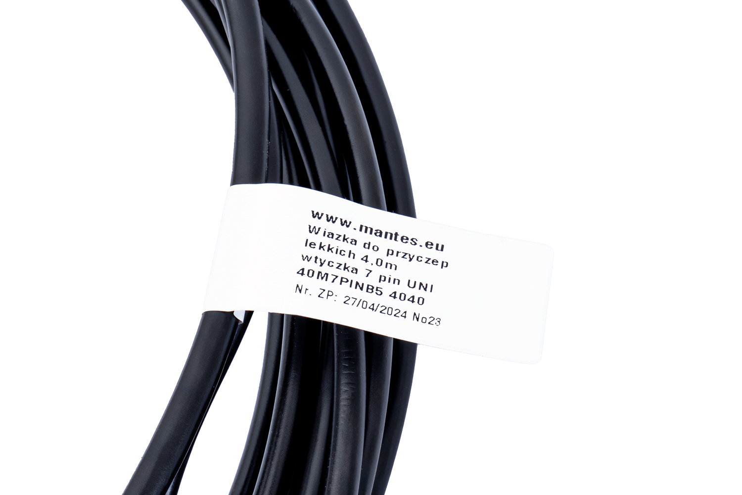 MANTES elektriske system er en praktisk og pålitelig løsning for bilhengere. Hovedkabelen på 4 meter, med et tverrsnitt på 0,5 mm², er utstyrt med en standard 7-pinners plugg , noe som sikrer universell kompatibilitet med de fleste kjøretøy.