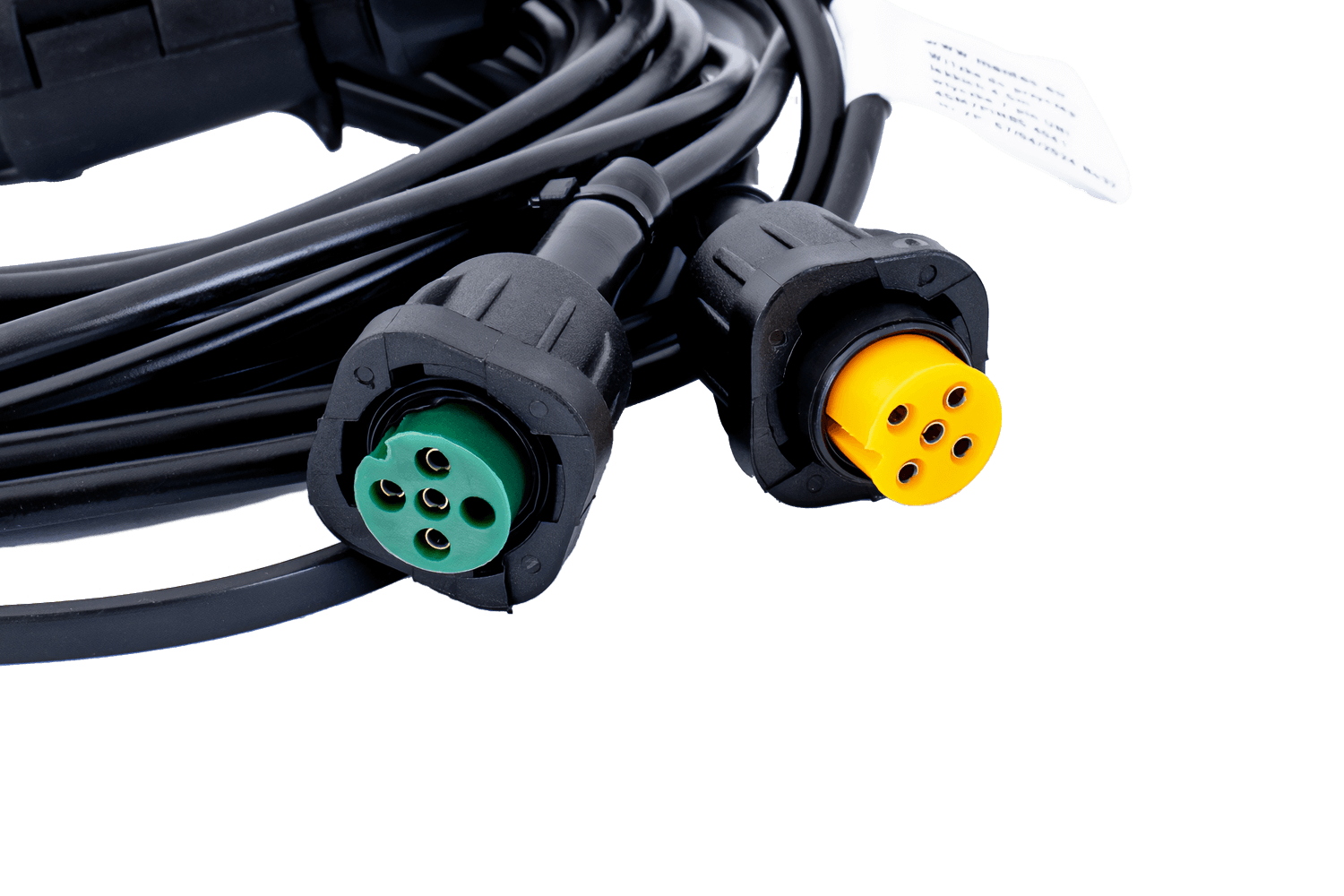 Ledningsnettet er utstyrt med to 5-pinners bajonettkontakter for tilkobling av baklysene. Bajonettsystemet sikrer rask og sikker installasjon, og eliminerer risikoen for utilsiktet frakobling under kjøring. Kontaktdesignet garanterer en vanntett tilkobling og beskytter kontaktene mot korrosjon, noe som sikrer langvarig og problemfri drift av hele tilhengerens belysningssystem.