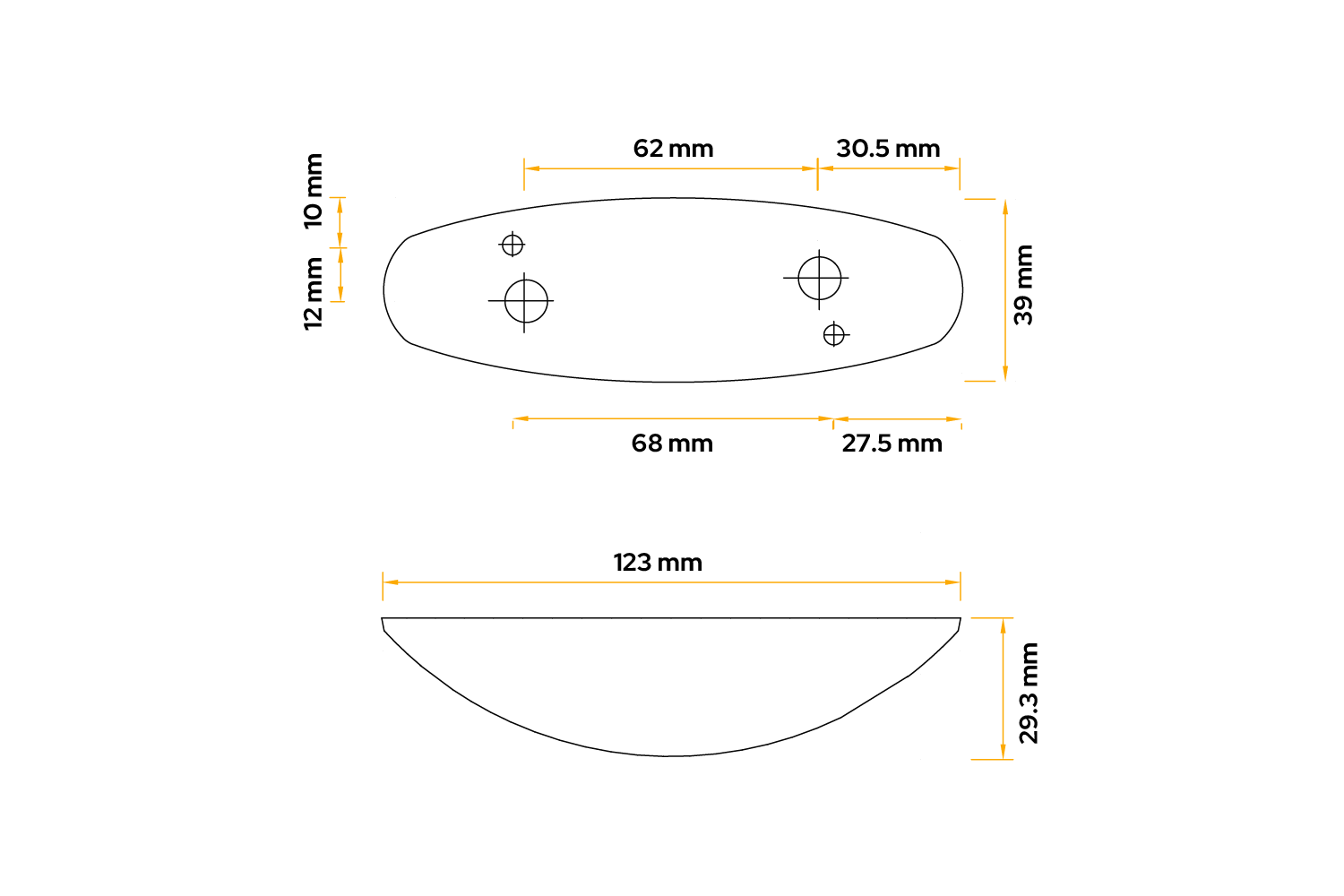 Markeringslampen FLEXIPOINT II i svart hus fra ASPÖCK er designet for montering på både venstre og høyre side av kjøretøyet og har følgende dimensjoner: bredde 123 mm, høyde 39 mm, dybde 29,3 mm . Utstyrt med en 2,25 m flatkabel , muliggjør den enkel og rask installasjon og kan brukes i leveringsbiler, tilhengere, semitrailere og bobiler .
