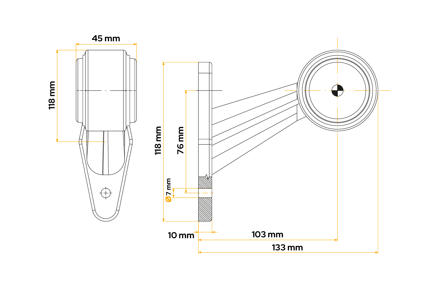 FT-009 C LED-markeringslampe fra FRISTOM er designet for montering på både venstre og høyre side av kjøretøyet og kjennetegnes av følgende dimensjoner: bredde 118 mm, høyde 133 mm, dybde 45 mm . Designet for å operere innenfor et spenningsområde på 12-24 V , kan den brukes i tilhengere, landbruksmaskiner, lastebiler og tilhengere, noe som fremhever dens universalitet. Utstyrt med en kort, diagonal gummibom for montering og en 0,5 m lang flatkabel gir enkel og rask installasjon. Takket være bruken av LED-teknologi lampen gir høy ytelse, holdbarhet og energieffektivitet, og sikrer sikkerhet under ulike veiforhold.