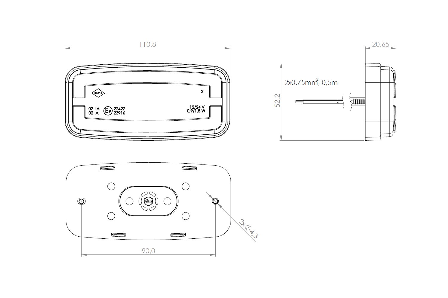 LD 2761 LED-markeringslykten fra HORPOL er designet for montering på både venstre og høyre side av kjøretøyet , og måler 110,8 mm i bredden, 52,2 mm i høyden og 20,65 mm i dybden . Den er designet for å fungere innenfor et spenningsområde på 12–24 V , og er egnet for bruk på tilhengere, landbruksmaskiner, lastebiler og bergingsbiler, noe som understreker dens allsidighet. Utstyrt med en 0,5 m flatkabel , muliggjør den rask og enkel installasjon. Takket være LED-teknologi gir lampen høy ytelse, holdbarhet og energieffektivitet, noe som sikrer sikkerhet under ulike veiforhold. Lampehuset muliggjør installasjon uten synlige fester.
