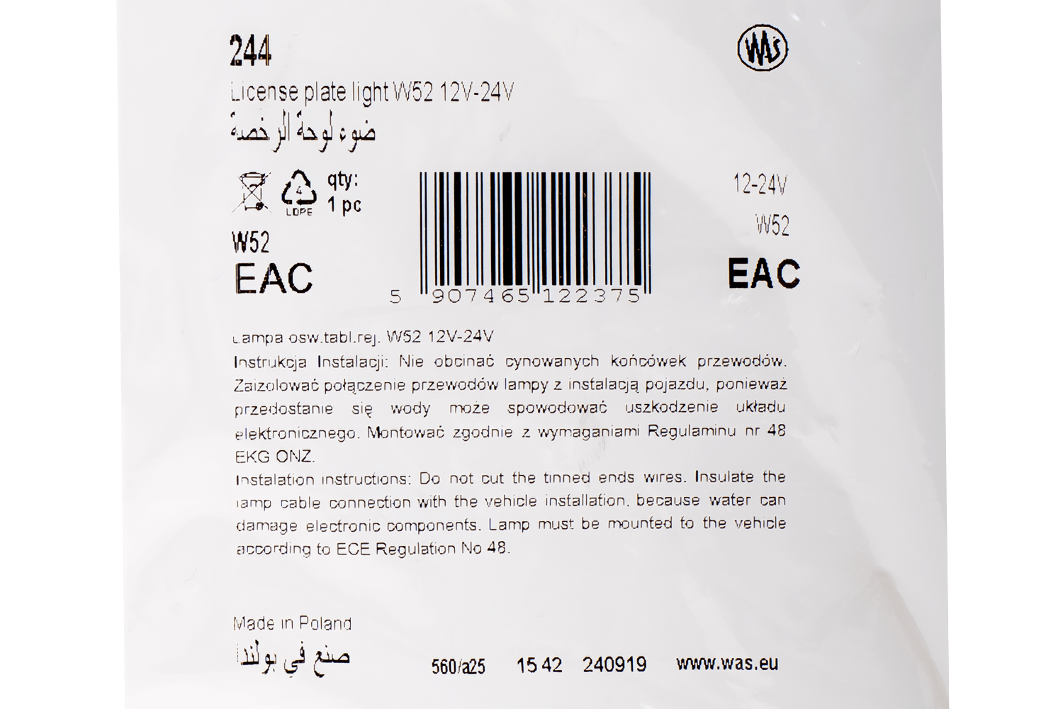 W52 LED-skiltlyset fra WAŚ er en moderne og effektiv løsning for å lyse opp bilskilt. Utstyrt med to LED-lys gir det et sterkt og jevnt lys, noe som øker synligheten av bilskiltet, spesielt under dårlige lysforhold. Lyset fungerer på spenninger fra 12V til 24V , noe som gjør det til et universelt valg for ulike typer kjøretøy, som personbiler, varebiler og lastebiler.