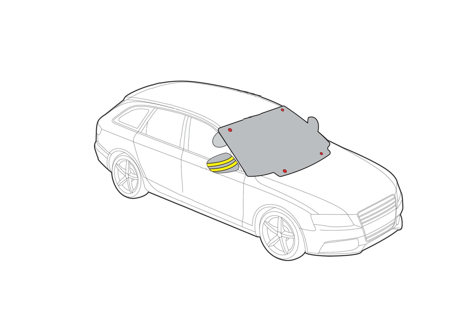 Trekket er effektivt året rundt : det forhindrer is og rim på frontruten om vinteren, reduserer UV-stråling og kupévarme om sommeren, og beskytter mot støv, harpiks og løv hele sesongen. Dette sparer tid (ingen isskraping), øker komforten når du setter deg inn i bilen, og gir bedre beskyttelse for komponenter som vindusviskere og dashbord når den er parkert i solen. Ideelt for daglig pendling, utendørs parkering og lengre stopp.