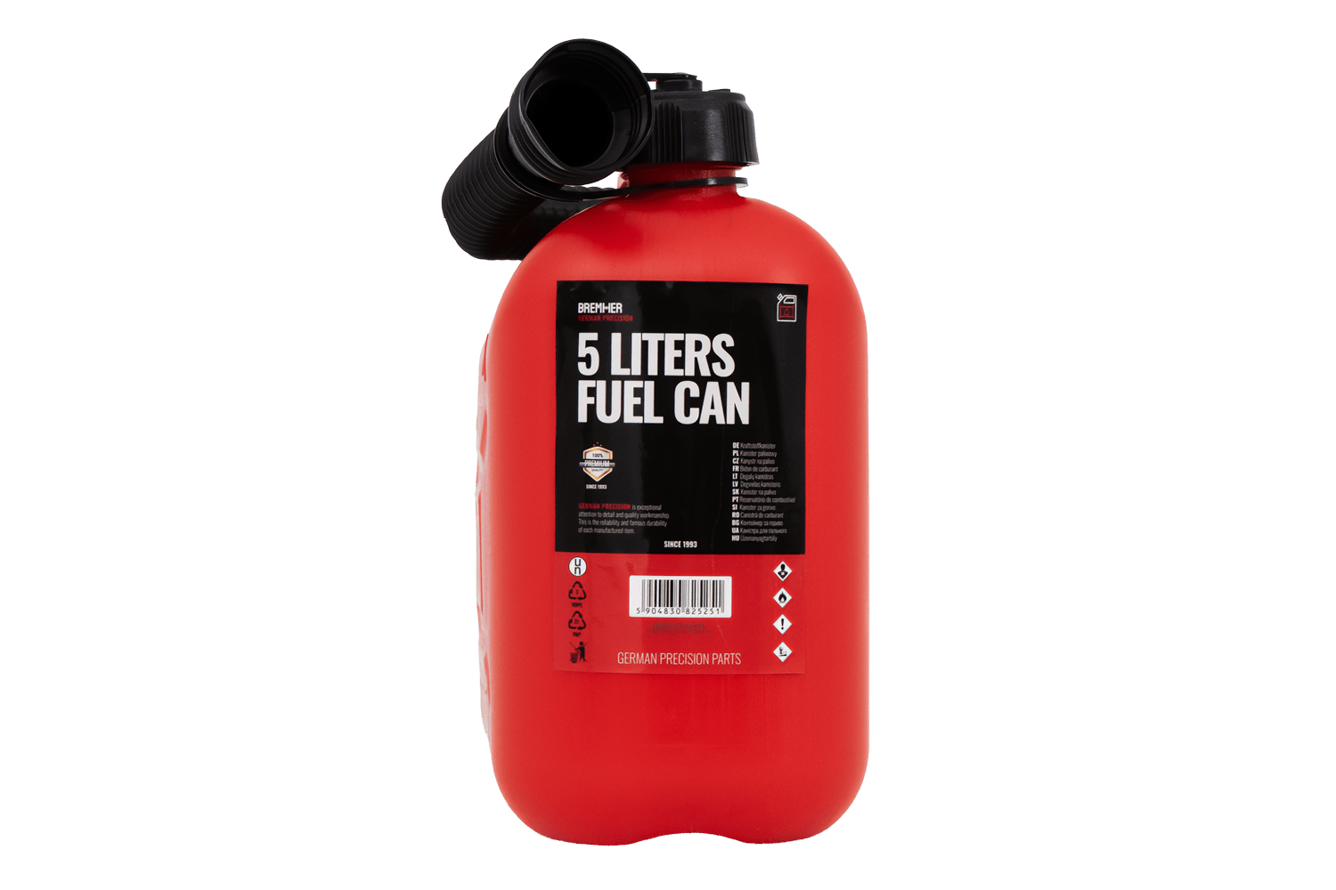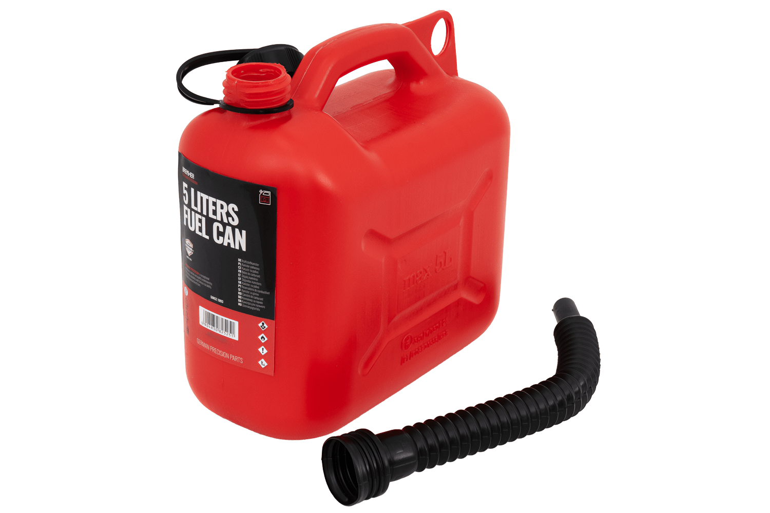 Denne 5-liters plastbeholderen er laget av HDPE av høy kvalitet, motstandsdyktig mot mekanisk skade og kjemikalier. Den har et ergonomisk håndtak for enkel bæring og en fleksibel trakt som skrus på beholderen for praktisk og presis helling uten søl.