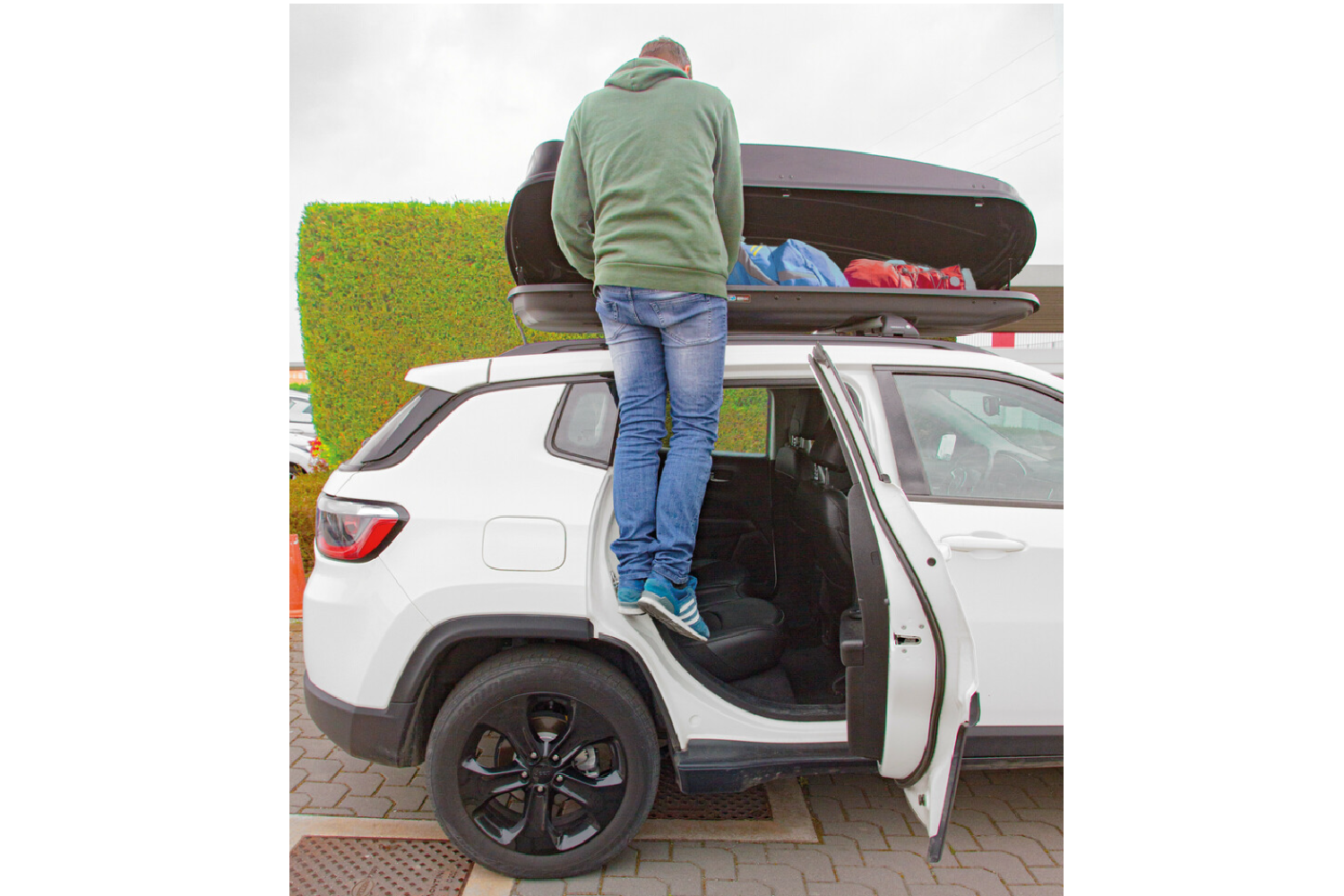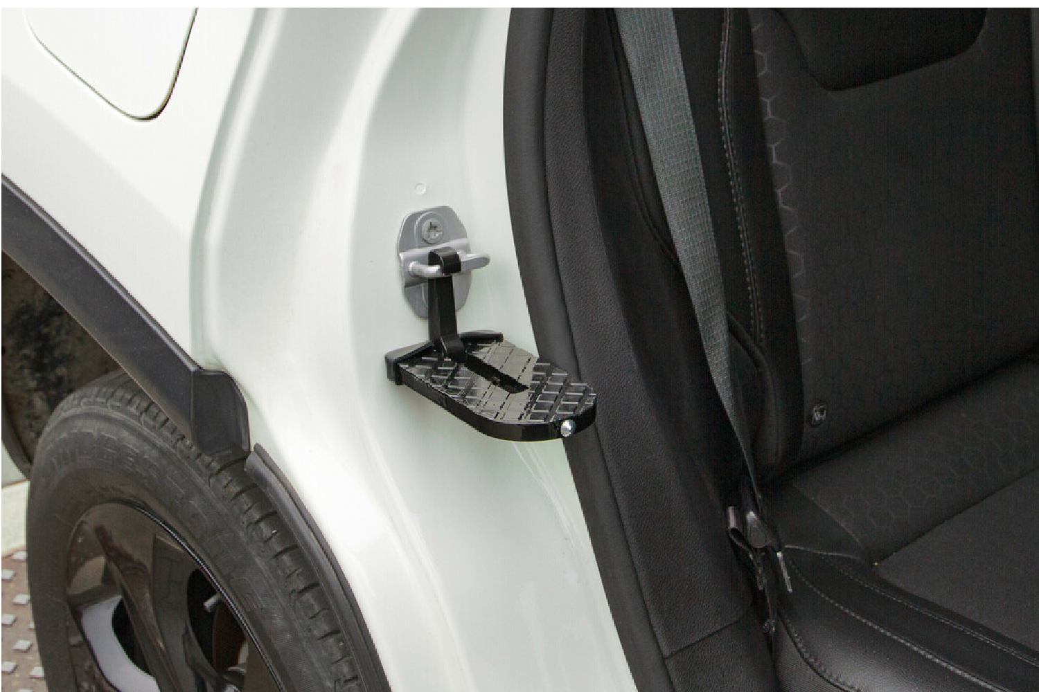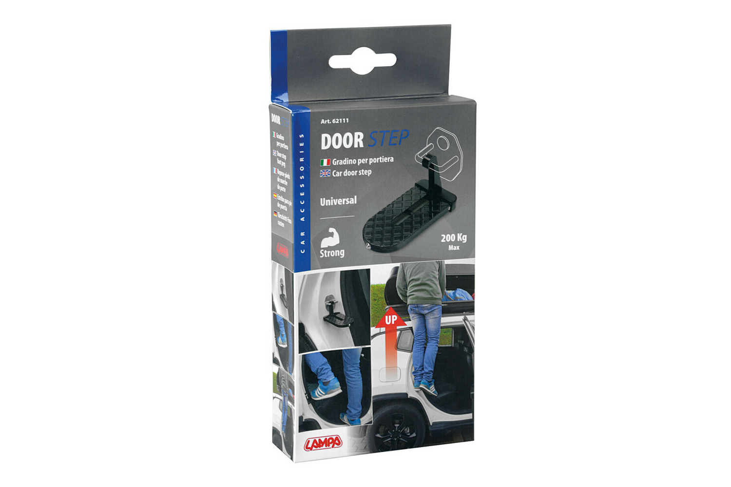 LAMPA 2-i-1 -sikkerhetstrinnet og hammeren gir trygg tilgang til biltaket uten bruk av stige, og i nødstilfeller fungerer den også som vindusknuser . Den er montert i dørlåsen og er nyttig for montering og pakking av takbokser, bruk av takstenger og vask/tørking av bilen – spesielt i høyere SUV-er og firehjulstrekkere .