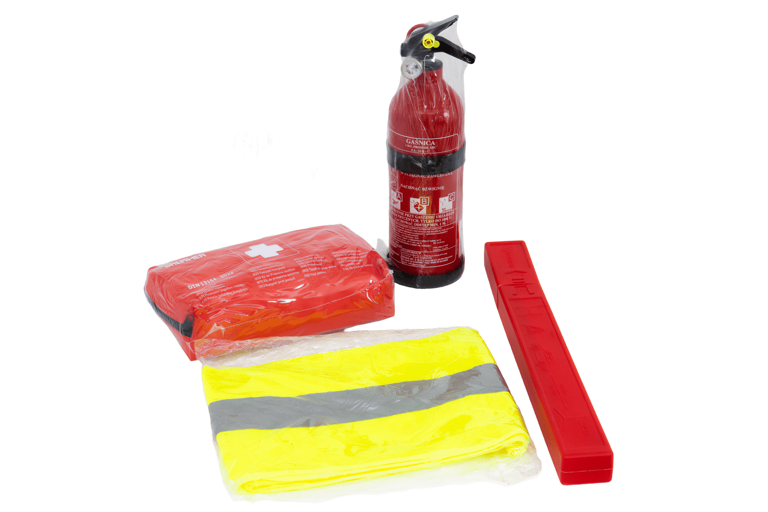 HERMON bilsett: førstehjelpssett, brannslukningsapparat, trekant, vest