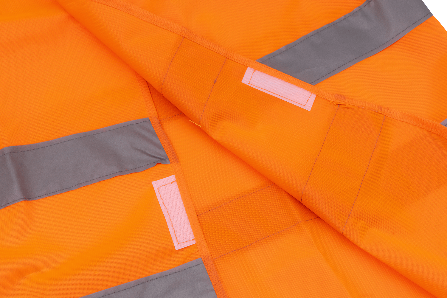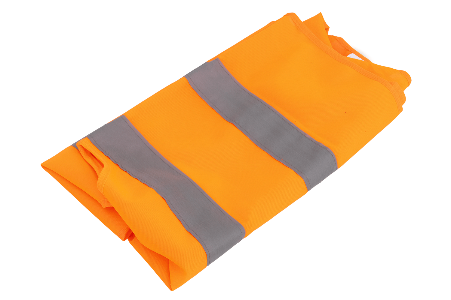 Denne XXL oransje refleksvesten er laget av lett, men usedvanlig slitesterkt 120 g materiale . Den er CE-sertifisert og oppfyller kravene i EN ISO 20471:2013- standarden, som definerer standarder for refleksklær. Takket være bruken av robuste, brede refleksstriper gir vesten utmerket synlighet på avstand , både på dagtid og om natten, samt under forhold med begrenset sikt. Stoffet av høy kvalitet er slitesterk samtidig som det opprettholder fleksibilitet og komfort selv ved langvarig bruk.