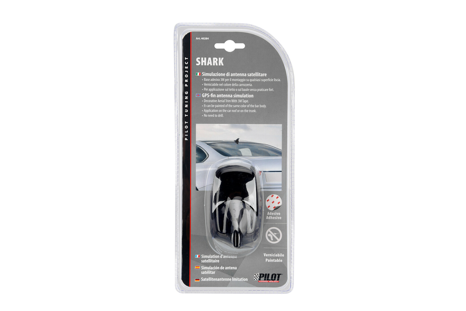Den dekorative Shark-antennen, en imitasjon av GPS-antennen , er et stilig tilbehør som gir kjøretøyet ditt et moderne og sporty utseende. Den er montert med 3M-tape og muliggjør rask og enkel montering uten boring. Den kan monteres på taket eller bagasjelokket , og overflaten kan lakkeres for å matche karosseriets farge, slik at den passer perfekt til kjøretøyet. Mål: 55 x 86 x 64 mm .