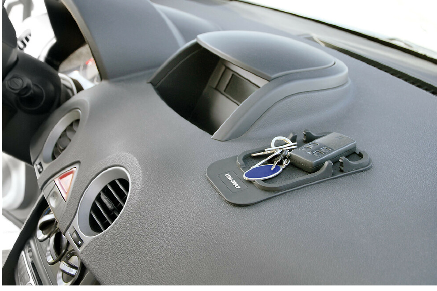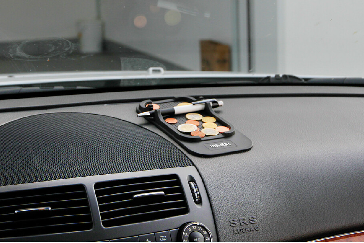 Den multifunksjonelle Uni-Mat sklisikre matten fra LAMPA , som måler 185 x 95 mm , er en praktisk matte for biler, hjem og kontorer . Den stabiliserer små gjenstander på dashbordet eller benkeplaten: mynter, nøkler, telefoner eller fjernkontroller til porten. Den godt grepsdyktige overflaten sørger for at gjenstandene holder seg på plass under bremsing, svinging eller på ujevne overflater, noe som reduserer distraksjon fra føreren og irriterende støy rundt i kupeen. Integrerte ribber fungerer som et praktisk telefonstativ – du kan enkelt se navigasjons- eller gjøremålslisten din uten ekstra håndtak.Matten er sklisikker og limfri : den er ikke-flekker, ikke-klebrig, krever ikke lim og etterlater ingen rester når den fjernes. Laget av et fleksibelt og slitesterkt materiale , tilpasser den seg godt til overflaten og opprettholder grepet på begge sider. Det er en gjenbrukbar løsning – hvis overflaten samler støv eller mister grepet, er det bare å vaske den med vann (et mildt vaskemiddel kan brukes), tørke den, og den er som ny igjen. Uni-Mat er perfekt for biler, varebiler og lastebiler , og utover bilbruk – på skrivebord, i verksteder, på kjøkken eller i båter , hvor rask oppbevaring uten risiko for forskyvning er viktig.