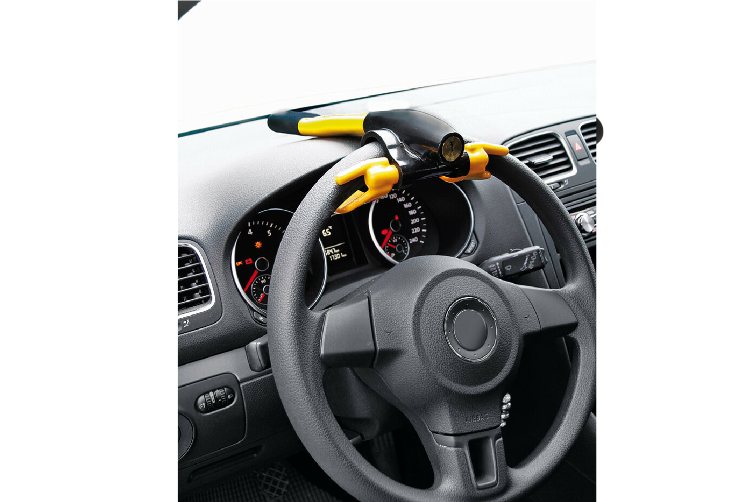 Installasjon og fjerning er svært enkelt: låsen festes til rattet på sekunder og låses automatisk når klørne lukkes. Kontaktflatene har et mykt vinylbelegg som beskytter rattet og dashbordet mot riper. Når den er installert, er den godt synlig , noe som ytterligere avskrekker potensielle tyver .