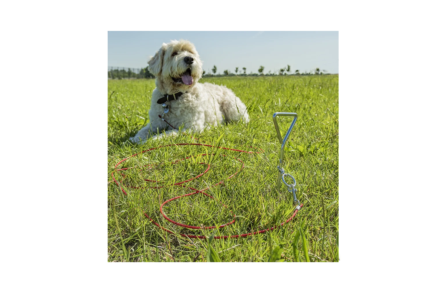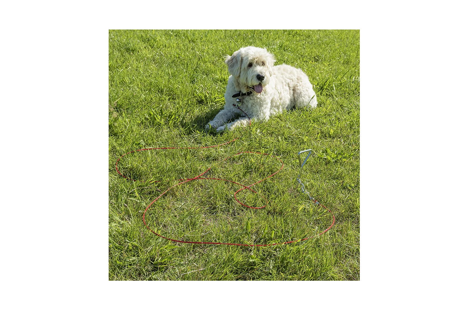 Dette produktet er perfekt for opphold på en kolonihage, campingplass eller i en uinngjerdet hage , eller for kortsiktig beskyttelse av hunden din utendørs. Dette lette, mobile og enkle å installere tilbehøret gir kjæledyret ditt større bevegelsesfrihet samtidig som det beholder kontrollen over sikkerheten sin.