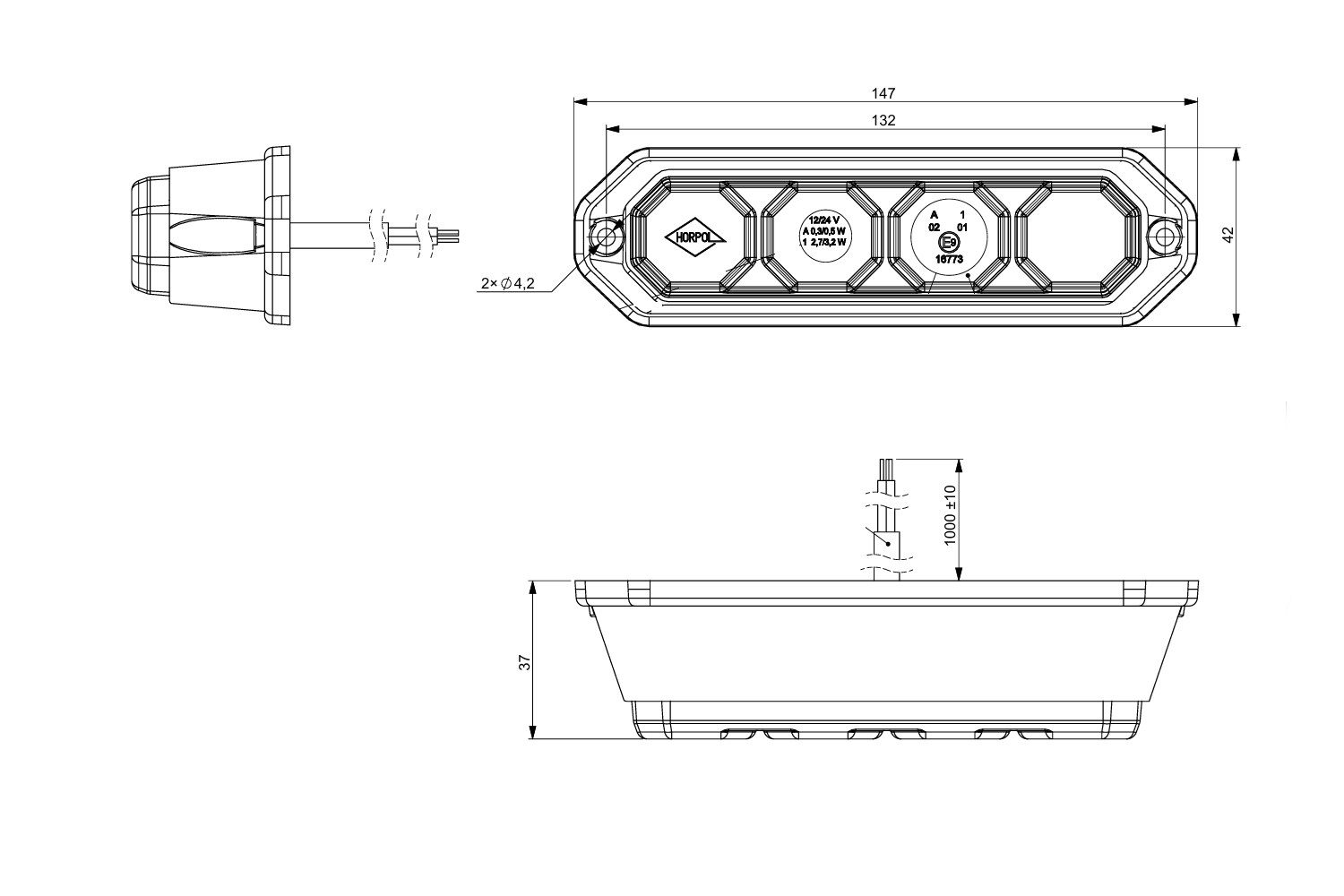 LZD 2265 LED-frontlykten, designet for montering på både venstre og høyre side av kjøretøyet , måler 147 mm bred, 42 mm høy og 37 mm dyp . Den er designet for å fungere innenfor et spenningsområde på 12–24 V , og har en 1 m lang kabel med et tverrsnitt på 3 x 0,5 mm² for rask og enkel installasjon. Takket være LED-teknologi gir lykten høy ytelse, holdbarhet og energieffektivitet, noe som sikrer sikkerhet under ulike veiforhold.