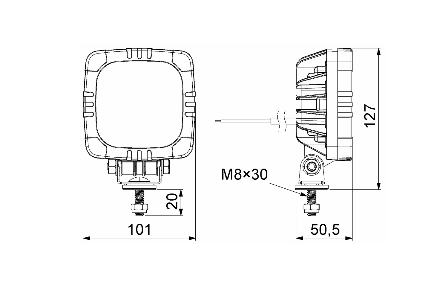 Lampen er utstyrt med en monteringsbrakett som gir stabil montering, selv på vanskelig tilgjengelige steder. Vippestøtten muliggjør vinkeljustering, noe som gir presis justering av lysretningen. Den er egnet for kjøretøy som spesialkjøretøy, landbruksmaskiner og anleggsmaskiner .
