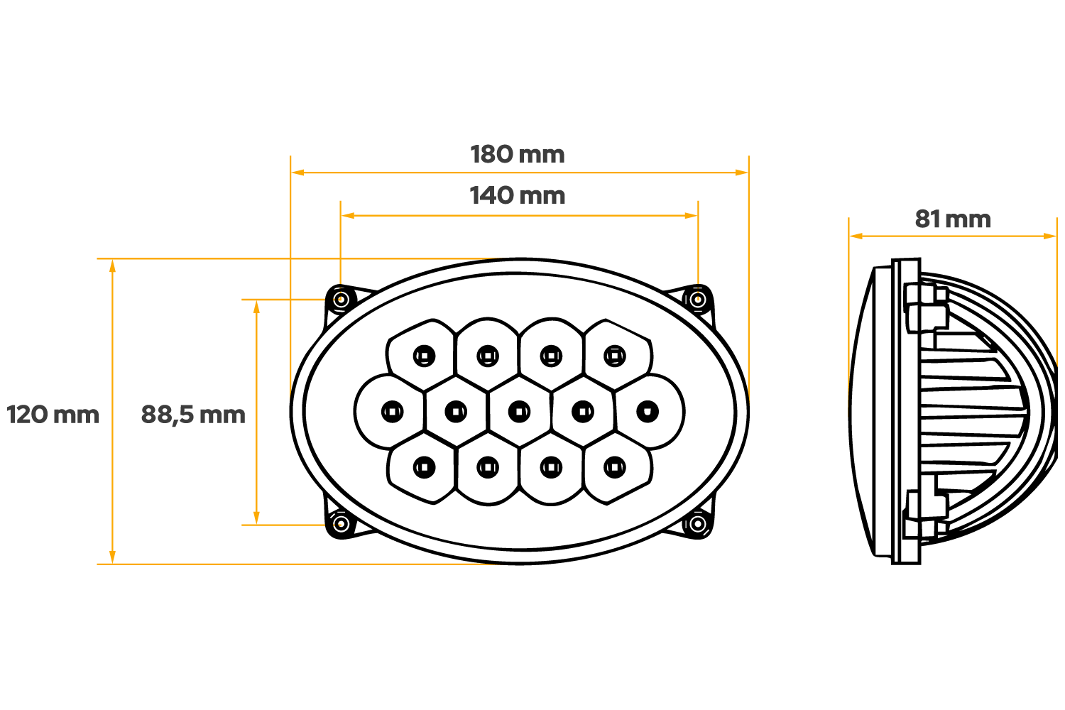 Lampen kjennetegnes av høy motstand mot støt, vibrasjoner og ekstreme temperaturer fra -40 °C til +80 °C, noe som sikrer pålitelig drift under vanskelige arbeidsforhold. Den justerbare strålevinkelen muliggjør presis justering av lysstrålen, noe som minimerer risikoen for å blende andre trafikanter og dermed øker arbeidskomforten og sikkerheten. I tillegg oppfyller lampen kravene i CISPR 25 klasse 4- standarden, som betyr høy effektivitet i reduksjon av elektromagnetisk støy , slik at den ikke forstyrrer driften av andre elektroniske enheter i kjøretøyet og trygt kan brukes i moderne maskiner utstyrt med sensitiv elektronikk.