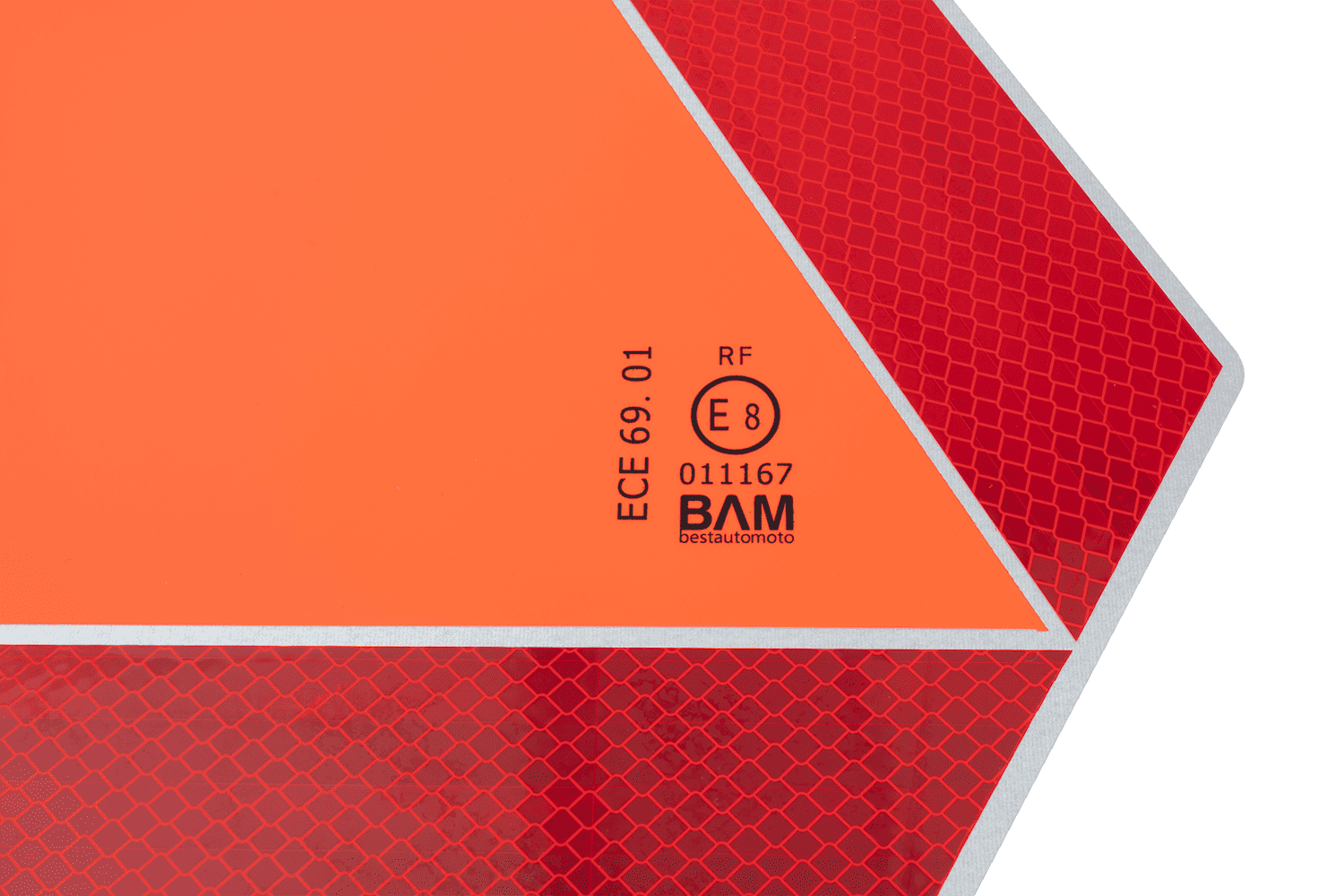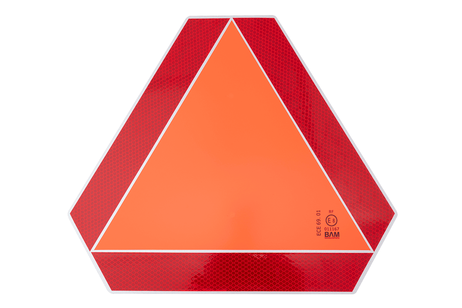 Med dimensjoner på 360 mm i høyden, 415 mm i maksimal bredde og 300 mm i basebredde , gir trekanten utmerket sikt, og signaliserer effektivt tilstedeværelsen av et saktegående kjøretøy på veien. Laget av materialer av høy kvalitet, oppfyller den kravene i ECE 69.01 og E-8 godkjenning , som garanterer samsvar med gjeldende sikkerhetsstandarder.