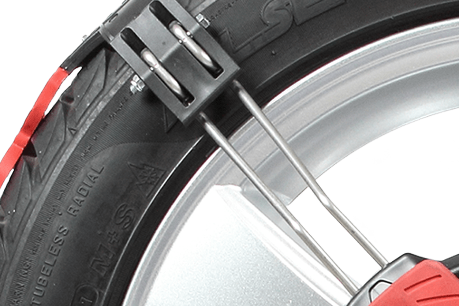 Polaire Grip-kjeder er utstyrt med et universelt monteringssystem Den unike, justerbare designen gir perfekt passform mellom kjettingen og dekket . Et integrert klemmesystem med strammespak muliggjør rask og enkel montering av kjettingene . Installasjonen utføres på utsiden av hjulet, og krever ikke noe arbeid inne i hjulbuen, noe som eliminerer risikoen for forurensning av klær. Når kjettingene er montert på hjulene , sentrerer de seg umiddelbart etter start og krever ingen ytterligere stramming.