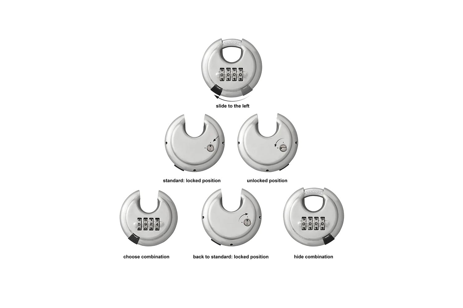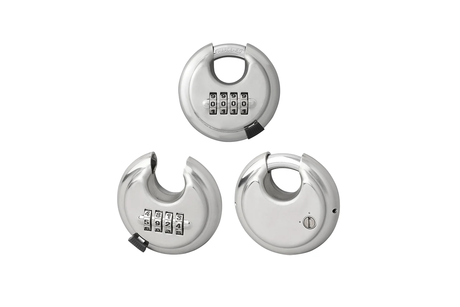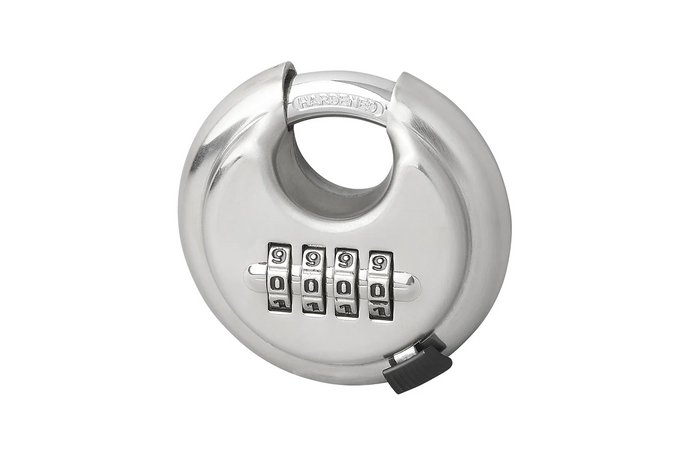 - konstruksjon - skiveformet hengelås laget av slitesterkt, forsterket stål