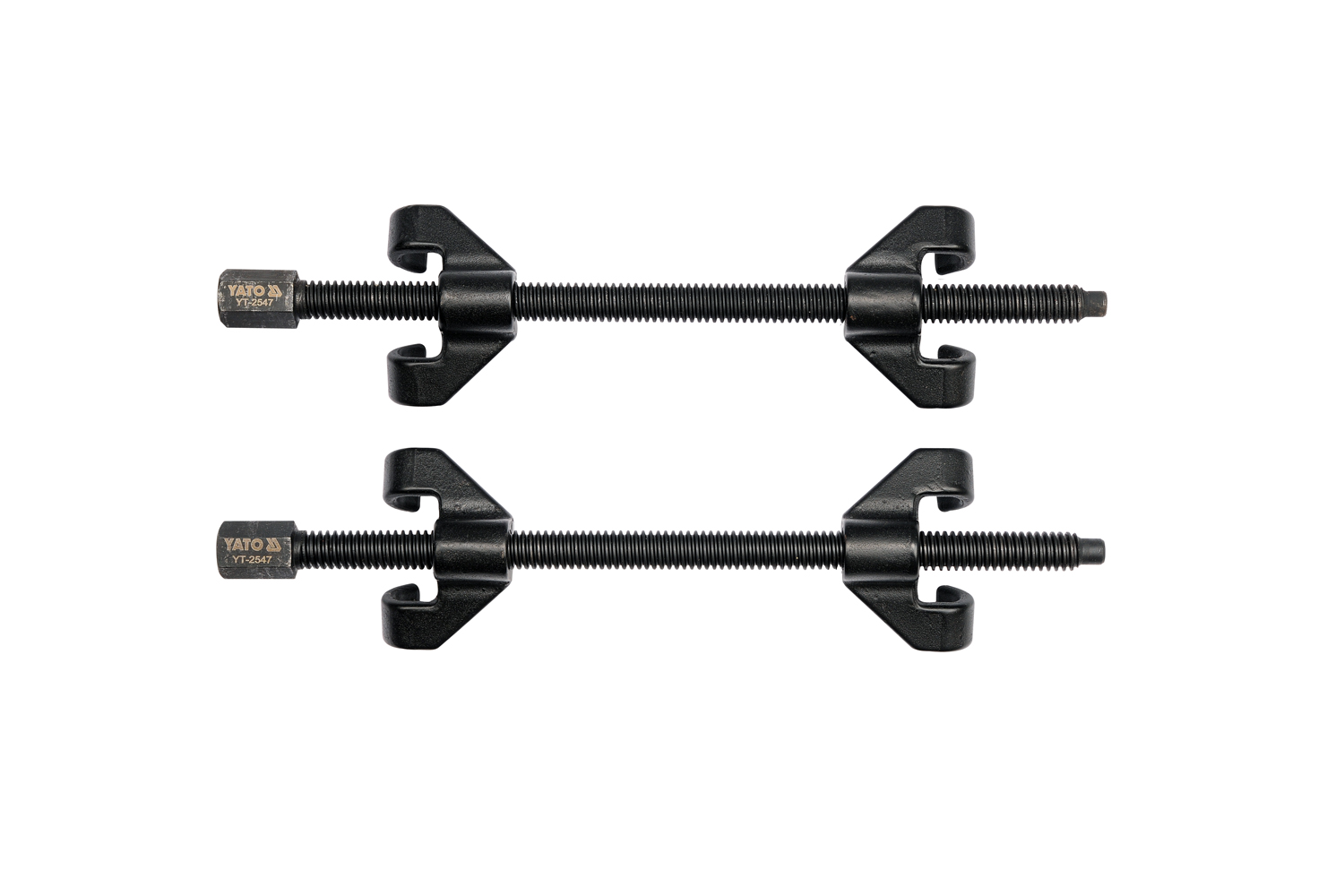 YT-2547 2-delers fjærkompressorsett er et robust verktøy designet for sikker montering og demontering av fjærer , inkludert MacPherson-fjærer. Med en arbeidslengde på 355 mm og en diameter på 82 mm muliggjør de stabil og kontrollert fjærkompresjon. Herdet CrV-stål og kaldsmiingsteknologi sikrer høy styrke og belastningsmotstand under drift.