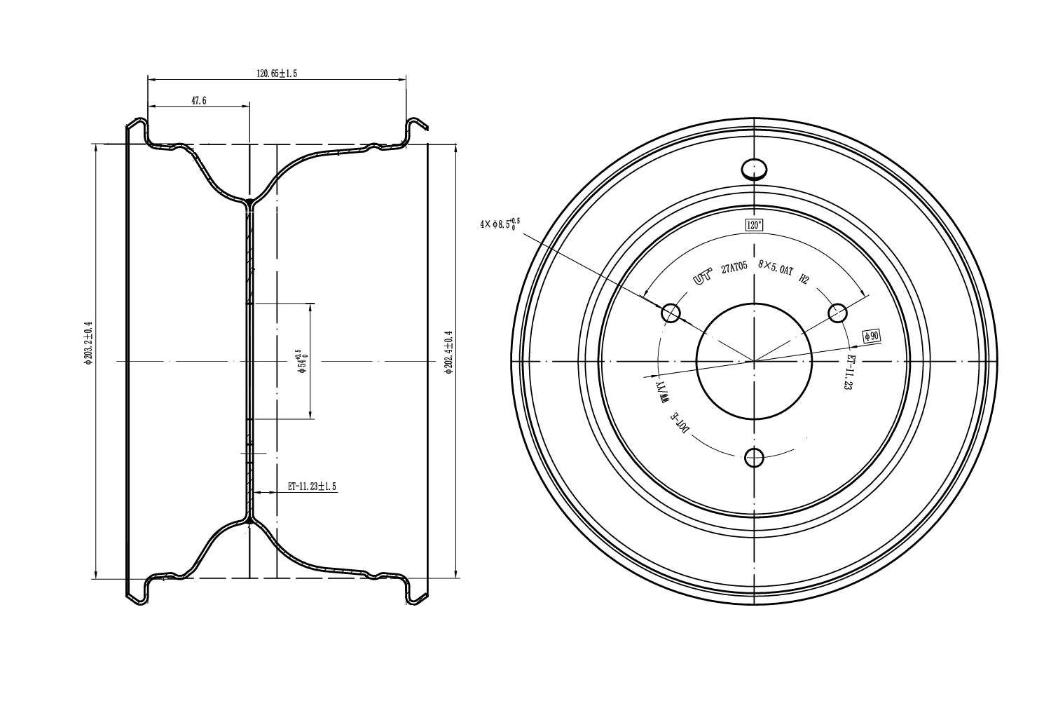 5AT×8"H2 3×90 svart stålfelg er en solid felg designet for hjul som primært brukes i lette tilhengere, transportvogner, hagemaskiner, kommunalt utstyr og spesialisert nytteutstyr. Felgen har en monteringsdiameter på 8 tommer og en bredde på 5,0 tommer , noe som sikrer stabil dekkfeste og riktig hjuldrift i daglig bruk.