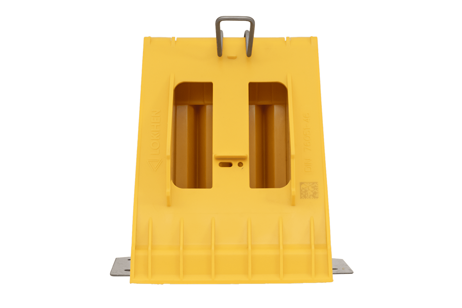 Dette settet, som består av en Crown 46 hjulklodde og en dedikert LOKHEN monteringsbrakett, er en praktisk og pålitelig løsning designet for lastebiler, tilhengere og andre tunge nyttekjøretøy. Klossen er 383 mm lang, 160 mm bred og 190 mm høy, og er designet for å gi maksimal kjøretøystabilitet under parkering, lasting, lossing og servicearbeid.