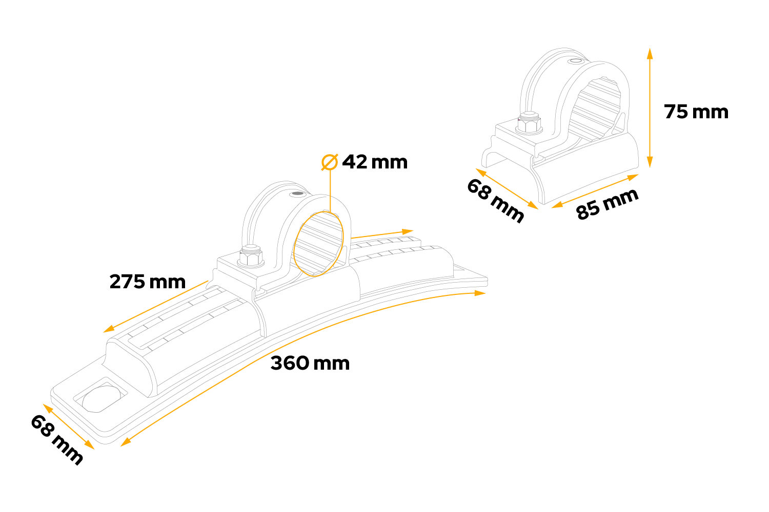 Den justerbare monteringsbraketten DK8146 fra DOMAR er et slitesterkt og praktisk element designet for montering av skvettskjermer i tilhengere, semitrailere, bergingsbiler og landbruks- og anleggsmaskiner. Braketten er 360 mm lang, 68 mm bred og en klemme med en diameter på 42 mm , noe som gjør den ideell for standard konstruksjonsrør som brukes i kjøretøyrammer .