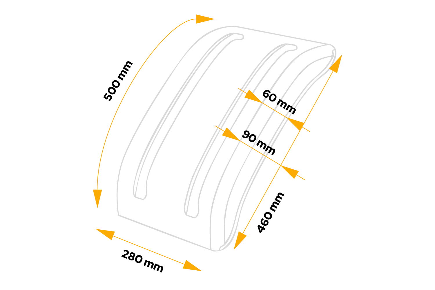 D10228 halvskjerm fra DOMAR er et kompakt og solid element designet for å beskytte hjul på nyttehengere, semitrailere, landbruks- og anleggsmaskiner og andre kjøretøy som opererer under krevende forhold. Takket være dimensjonene - lengde 460 mm, bredde 280 mm og høyde 90 mm - fungerer den utmerket der effektiv beskyttelse mot vann, gjørme og steiner under hjulene er nødvendig, samtidig som den sparer plass og gir enkel tilgang til drivelementer. Den har ikke fabrikkmonteringshull , noe som lar brukeren fritt justere monteringspunktene til den spesifikke kjøretøystrukturen .