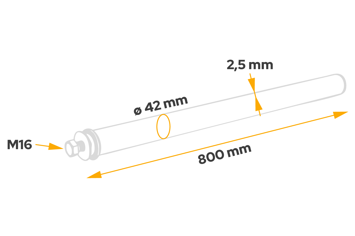 Det rette røret DK8022 fra DOMAR er et robust monteringselement laget av stål, pulverlakkert i svart, noe som øker motstanden mot korrosjon og tøffe driftsforhold. Røret har en diameter på 42 mm , en lengde på 800 mm og en M16 utvendig gjenge , noe som muliggjør rask og sikker installasjon med andre festemidler, for eksempel klemmer eller braketter.