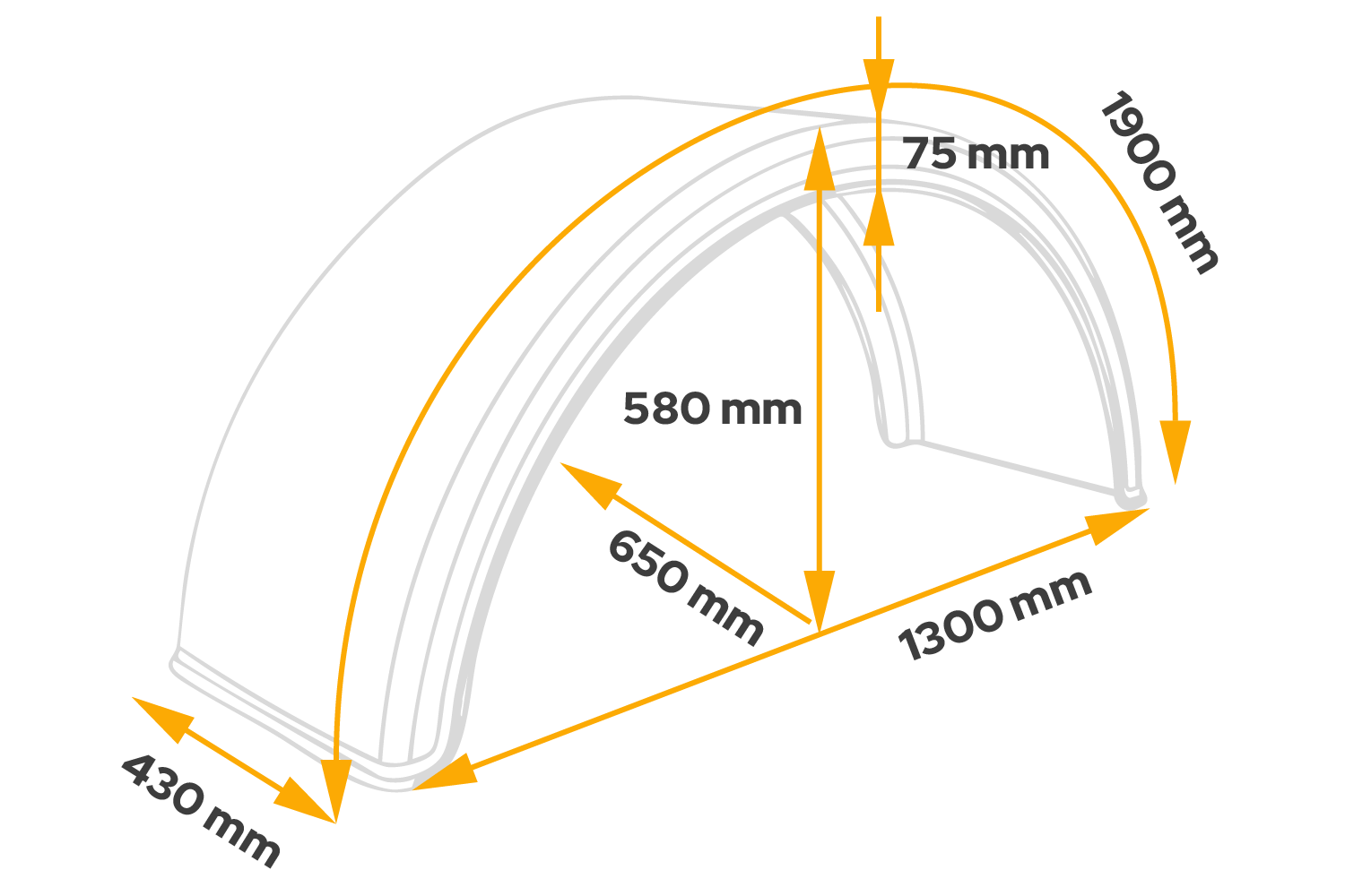 Tilhengerskjerm med hvit kantbånd 19,5-22,5" DOMAR DK1675 hjulbue 1300/430 mm