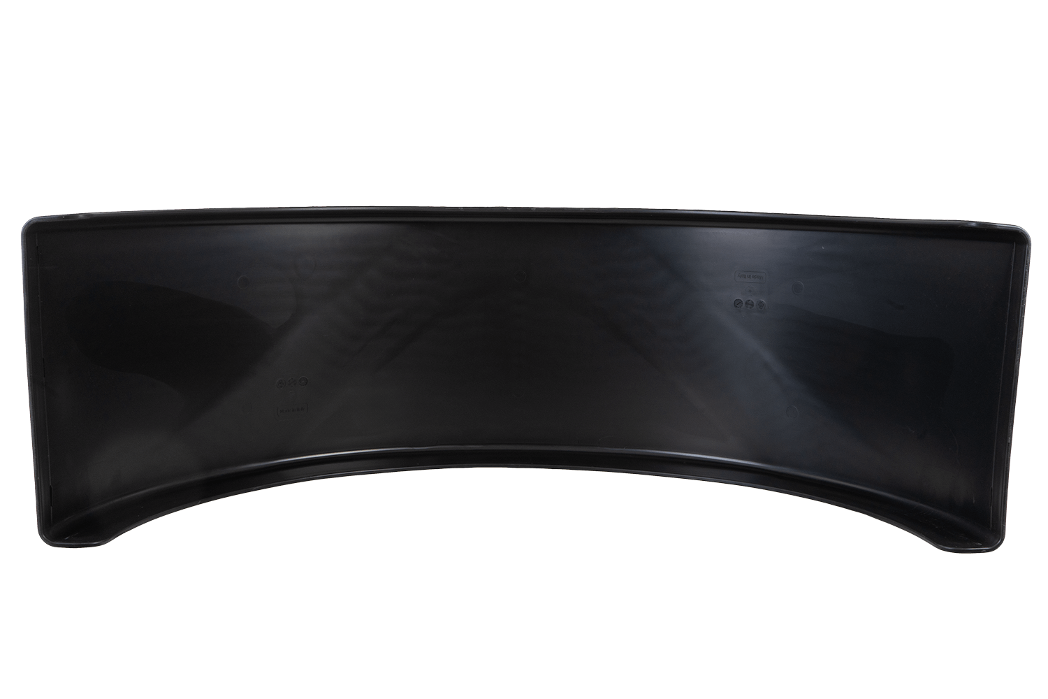 DK1675 DOMAR enkeltskjerm med hvit kant, designet for hjul med en diameter på 19,5 til 22,5 tommer, er et pålitelig utstyrselement for blant annet semitrailere og lastebilhengere med enkle hjul, samt for noen anleggs- og landbruksmaskiner med passende dimensjoner. Dimensjonene er 1300 mm lange, 430 mm brede og 580 mm høye . Skjermen har ikke fabrikkmonteringshull, noe som gir brukeren friheten til å justere monteringspunktene til et spesifikt kjøretøy.