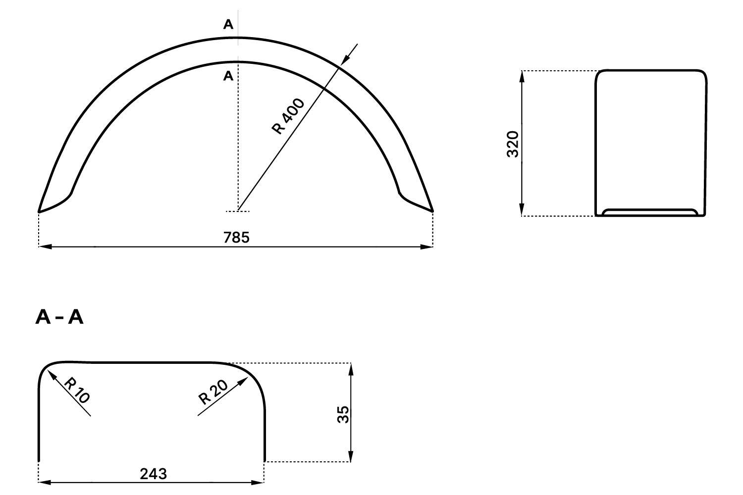 Tilhengerskjerm 14" CHORUS hjulbue 785/243 mm