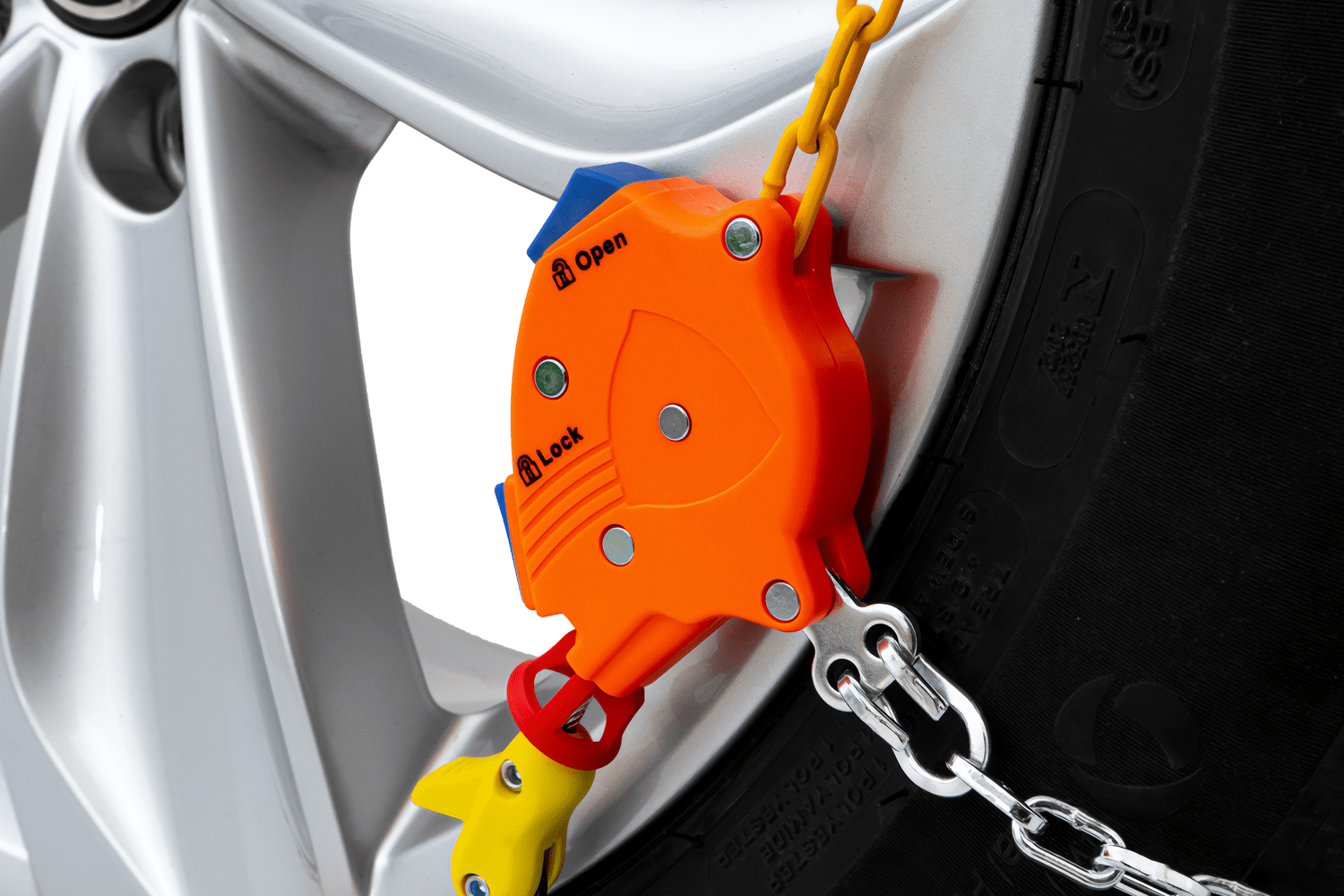 Det automatiske strammingssystemet eliminerer behovet for å stoppe for å stramme kjedene – strammingen justeres automatisk under kjøring. Dette gjør montering og fjerning rask og sikrer komfortabel bruk selv under vanskelige værforhold.