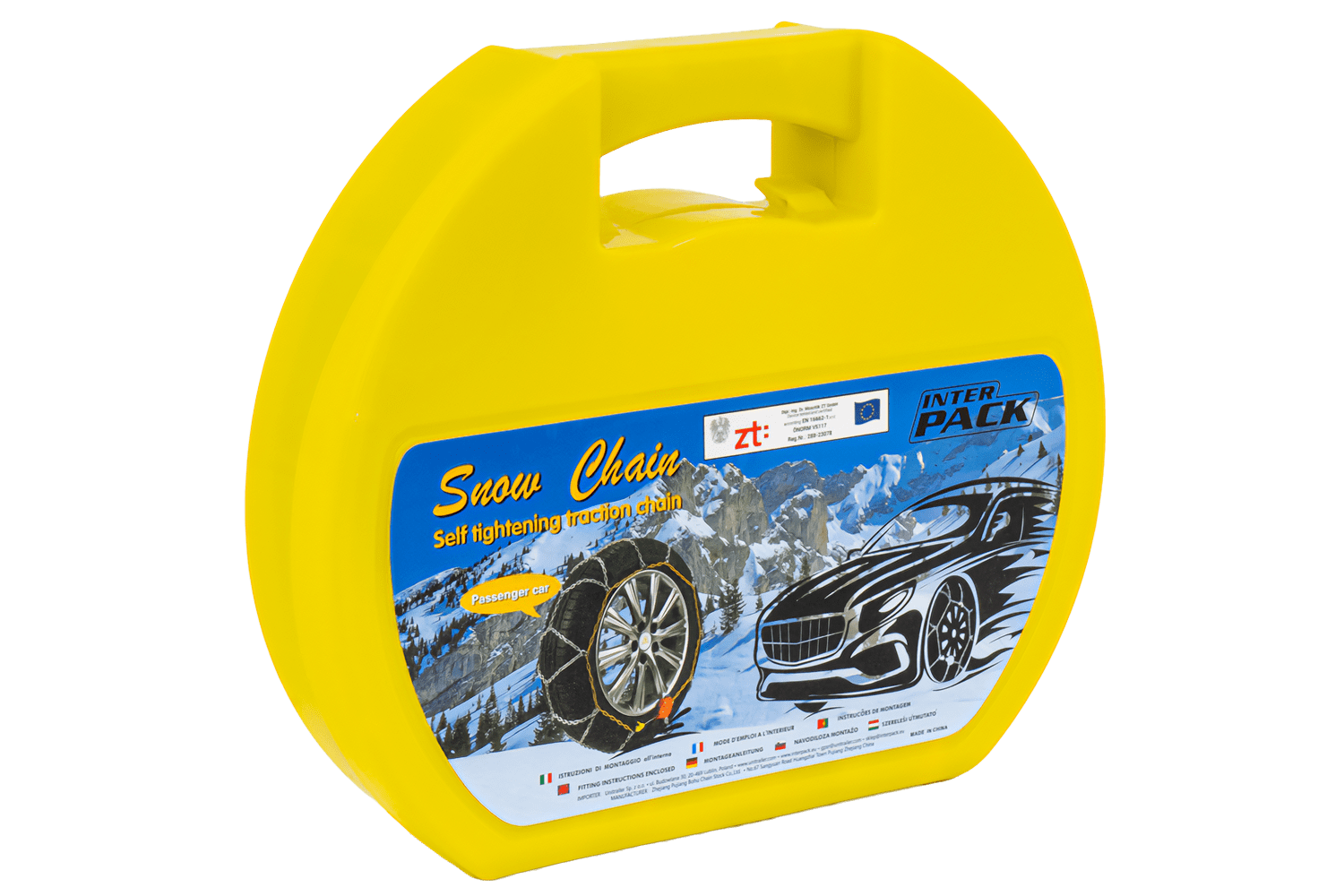 Inter Pack KNS-kjettinger er fullt kompatible med ABS- og ESP- systemer, og kvaliteten deres er bekreftet av Ö-NORM V5117- og EN 16662-1 -sertifikater. De oppfyller europeiske sikkerhetsstandarder, noe som gjør at de kan brukes lovlig i land der bruk av snøkjettinger er obligatorisk.