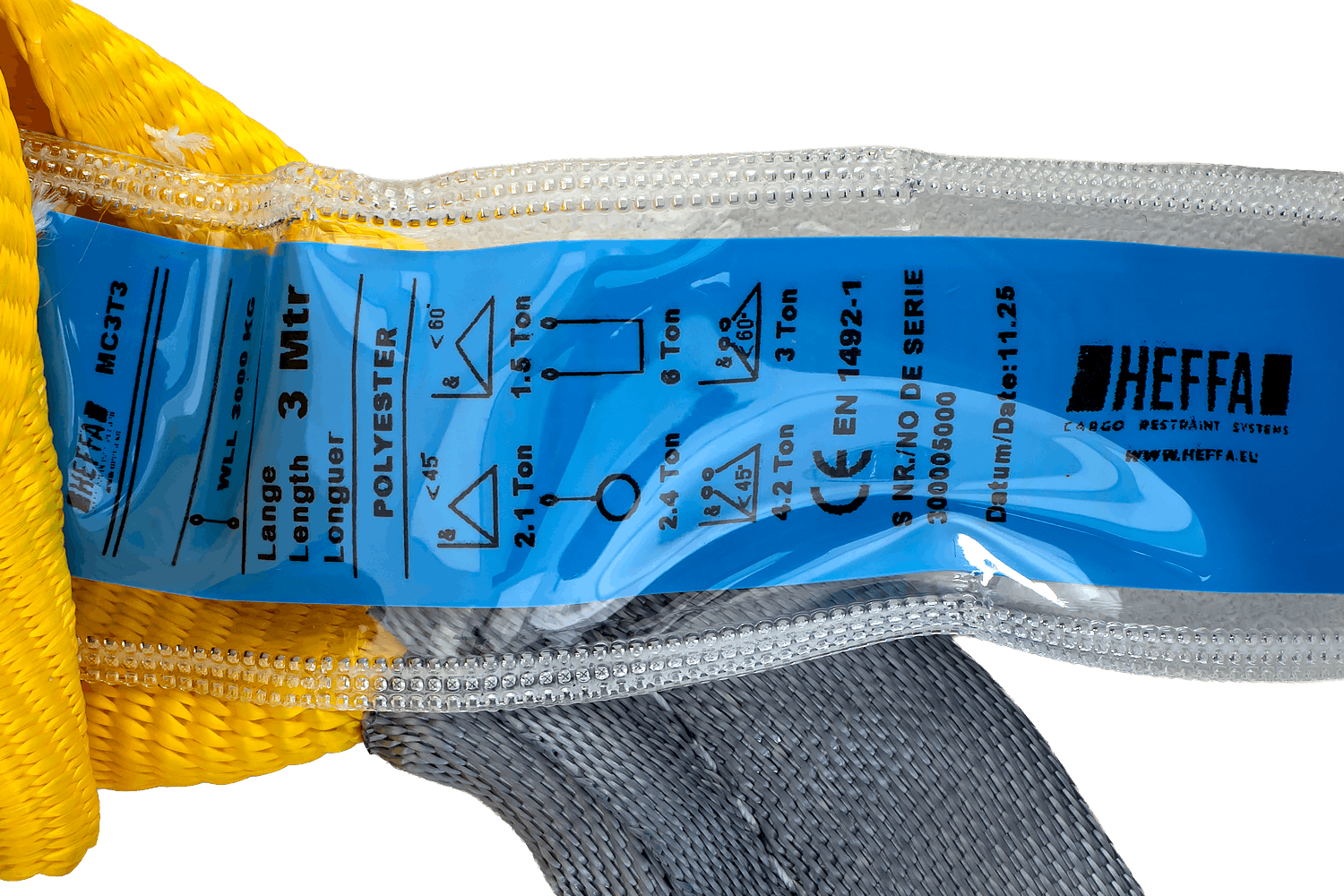 HEFFA- belteslyngen er 3 meter lang, 90 mm bred og har en lastekapasitet på 3 tonn. Den er et robust og pålitelig verktøy designet for løfting, trekking og sikring av last innen transport og logistikk. Forsterkede endeløkker sikrer komfortabel og sikker bruk, og muliggjør rask surring og stabil lastoppbevaring. Lengden gir fleksibiliteten og rekkevidden som trengs for å flytte store og uvanlige laster på en sikker måte.