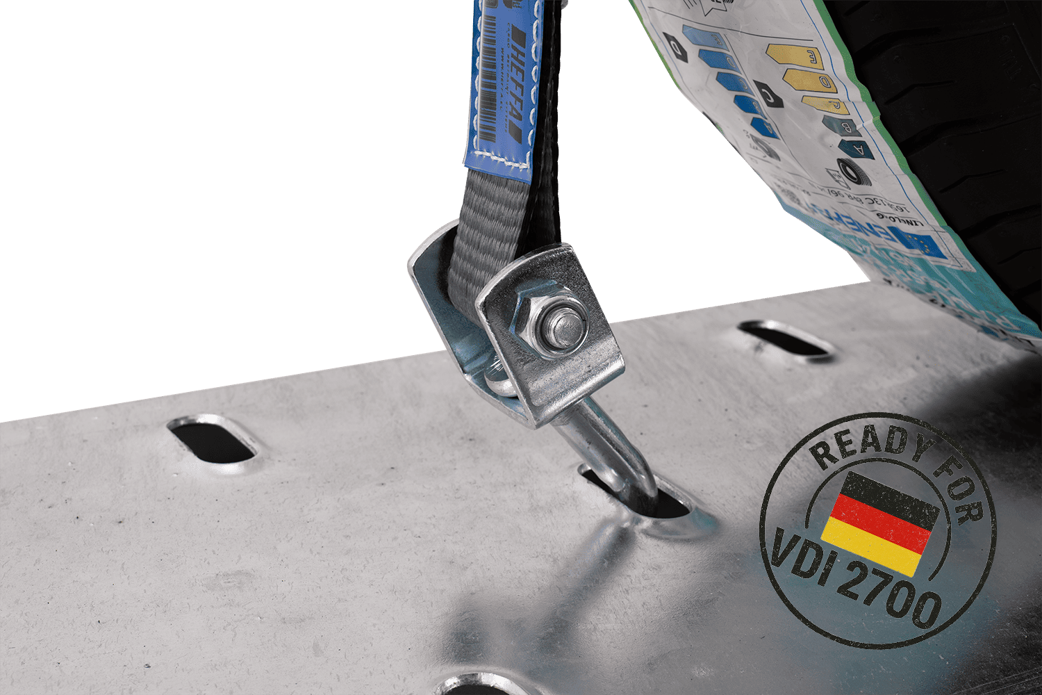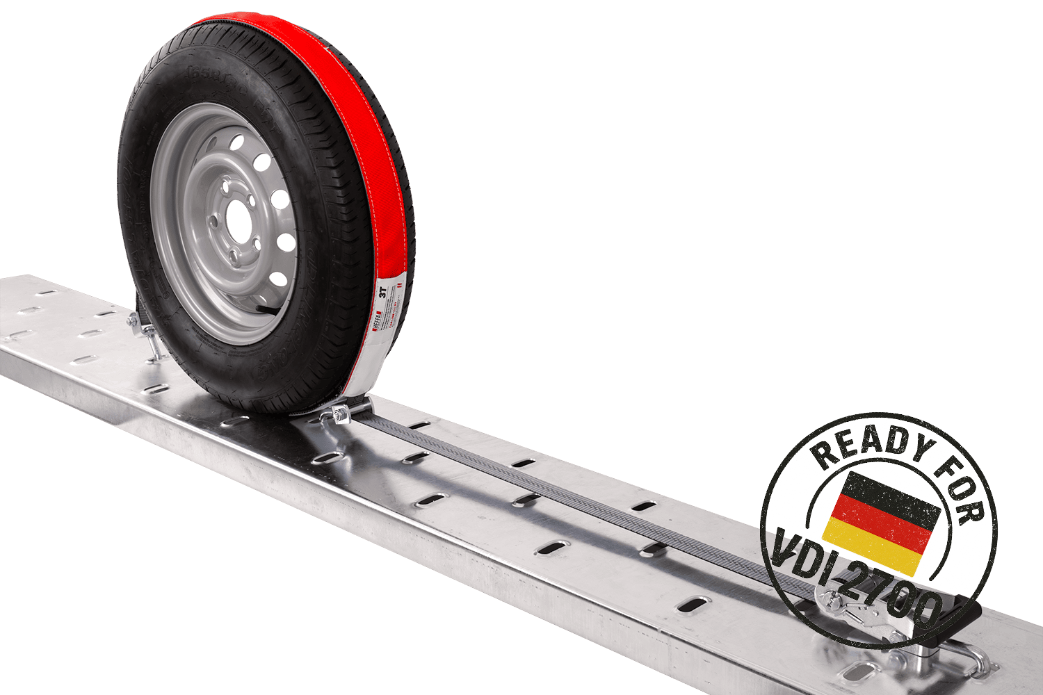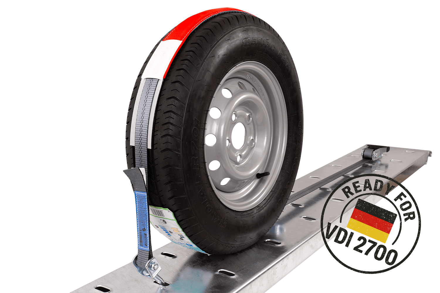 Direktivet VDI 2700 del 8.1 er en tysk teknisk standard som spesifiserer detaljerte krav for sikring av kjøretøy som transporteres på tilhengere med lasteplan og trailere . Når det gjelder surrestropper med hjulstropping, spesifiserer dette direktivet blant annet metoden for belteplassering, det nødvendige antallet surrepunkter (f.eks. 3-punktssystem), minimumsspenningsparametere og prinsippene for merking og tekniske godkjenninger. Samsvar med VDI 2700 8.1 betyr at stroppene oppfyller strenge krav til sikkerhet, pålitelighet og effektivitet ved immobilisering av det transporterte kjøretøyet , noe som er avgjørende for profesjonell transport av personbiler og varebiler. Takket være dette kan brukeren være sikker på at det brukte surresystemet oppfyller gjeldende europeiske og tyske standarder innen trafikksikkerhet.